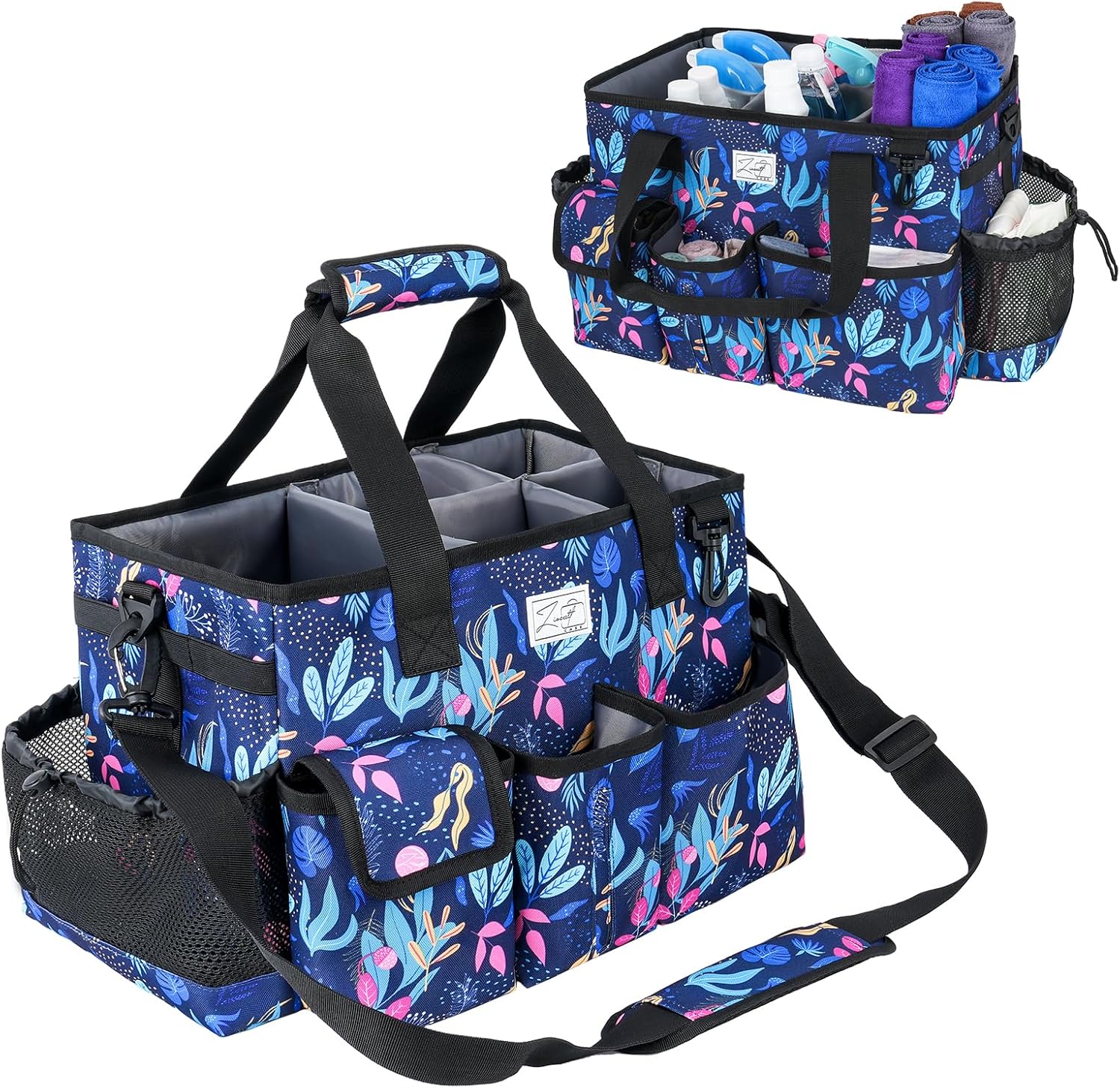 - Multi Pockets: Besides the large main compartment, this caddy bag has 6 pockets,the three front pockets can easily store some small item,large two sided pockets for storing large bottles, and back zipper pocket can store your valuable products