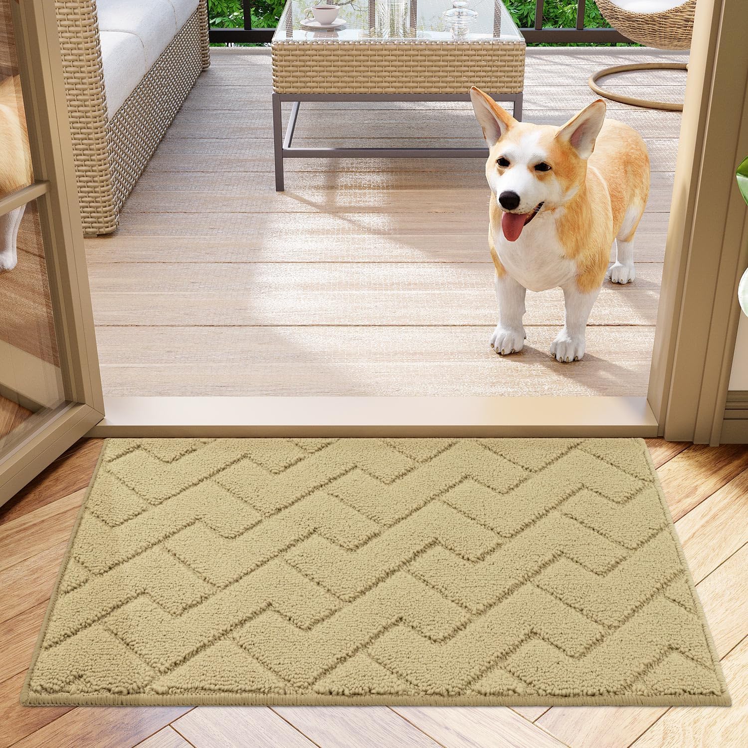 hicorfe Front Door Mat Outside Entrance,20"x31.5" Absorbent Muddy Dirt Resist Welcome Door Mats Outdoor Indoor,Stain and Fade Resistant,Non Slip Backing Entry Mat Doormat for Entryway(Beige)