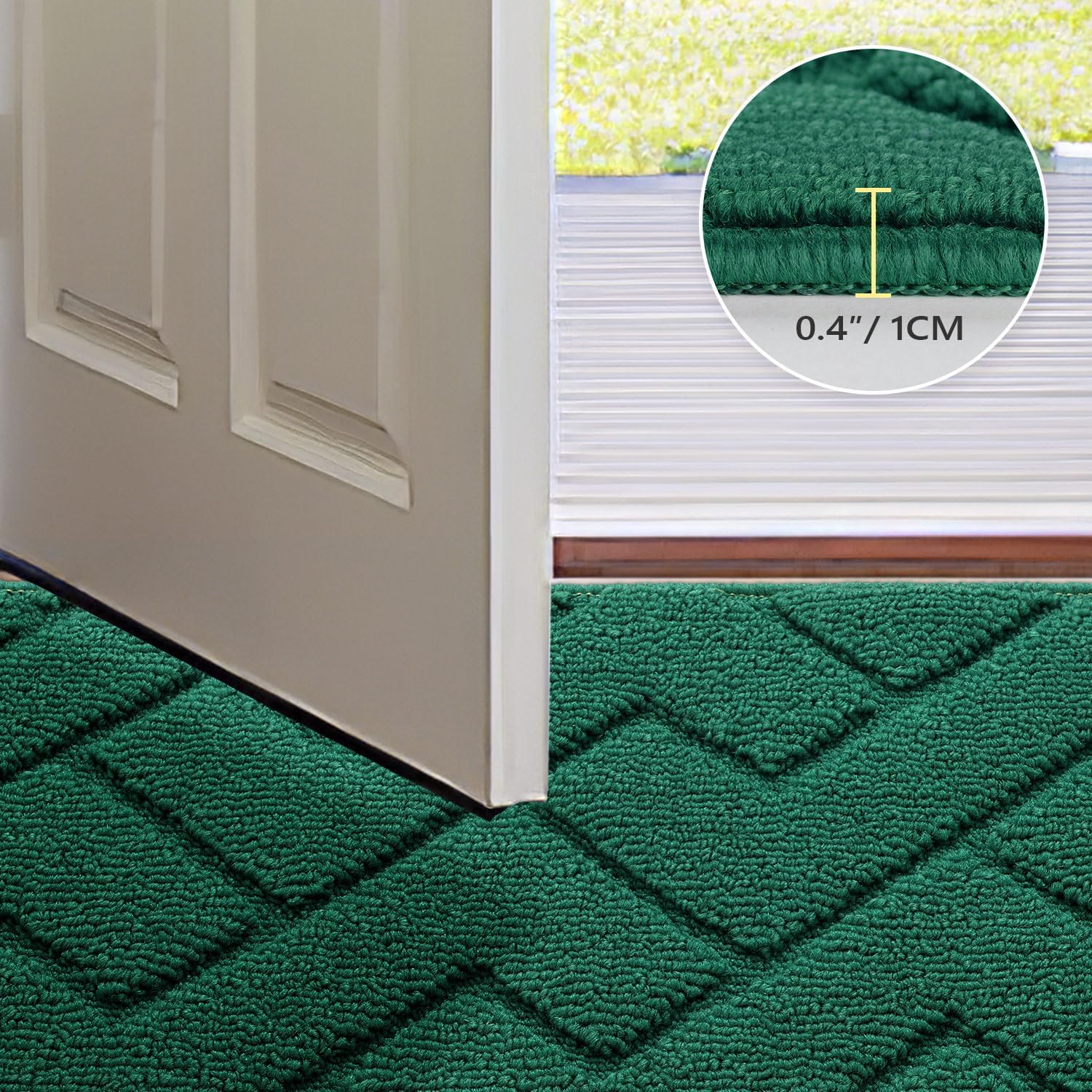 hicorfe Front Door Mat Outside Entrance,24"x35" Absorbent Muddy Dirt Resist Welcome Door Mats Outdoor Indoor,Stain and Fade Resistant,Non Slip Backing Entry Mat Doormat for Entryway (Evergreen)
