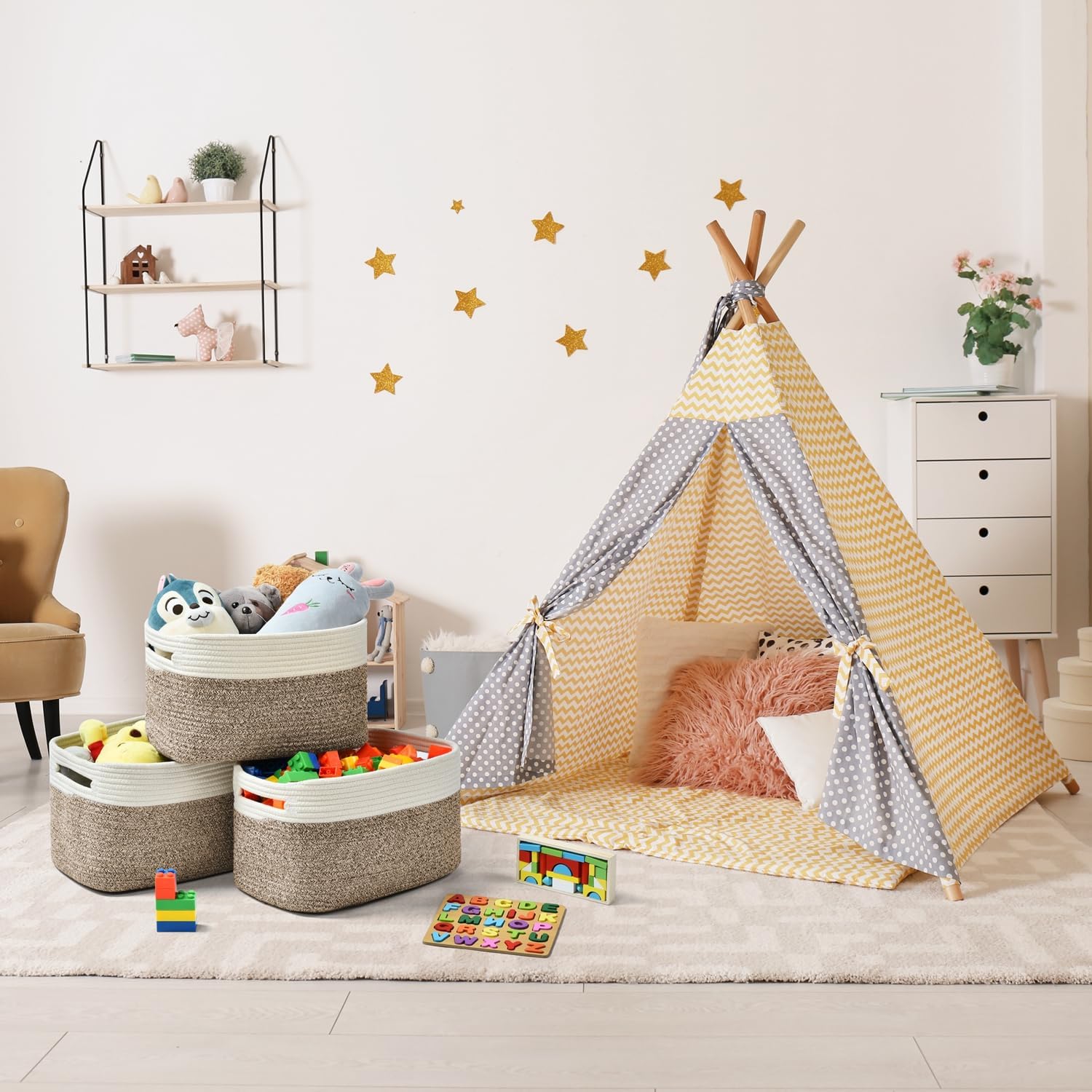 - 【Designed To Complement Your Room and Decor】Baskets for decor is stylish and beautiful,works as closet baskets and baskets for shelves,the storage basket is suitable for classroom,baby room,children's room,living room, bedroom,laundry room and nursery,dormitory,etc.