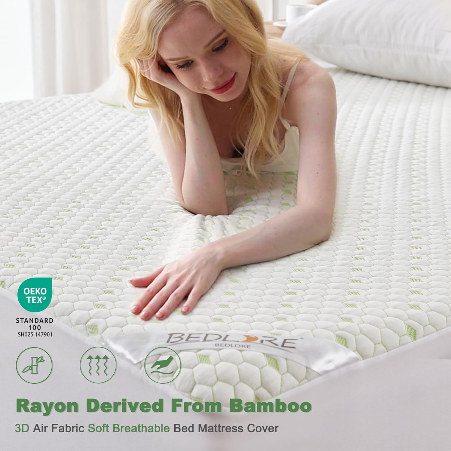 - Waterproof and Breathable: BEDLORE queen mattress protector waterproof features impermeable TPU backing, shielding your mattress from fluids, perspiration, urine, and stains so that your mattress is always dry and stain free, further enhances the overall lifespan of your mattress. Our white mattress protector queen ideal for households with pets or seniors