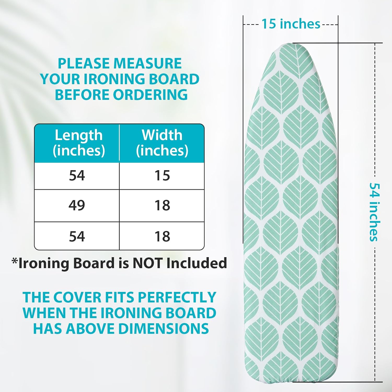 - SUITABLE FOR STANDARD IRONING BOARD: This ironing board cover designed for standard board to 54 x 15 inches. Suitable for standard size ironing boards with a width of 13 inches to 15 inches and a length of 52 inches to 54 inches. Note: Ironing board is NOT included