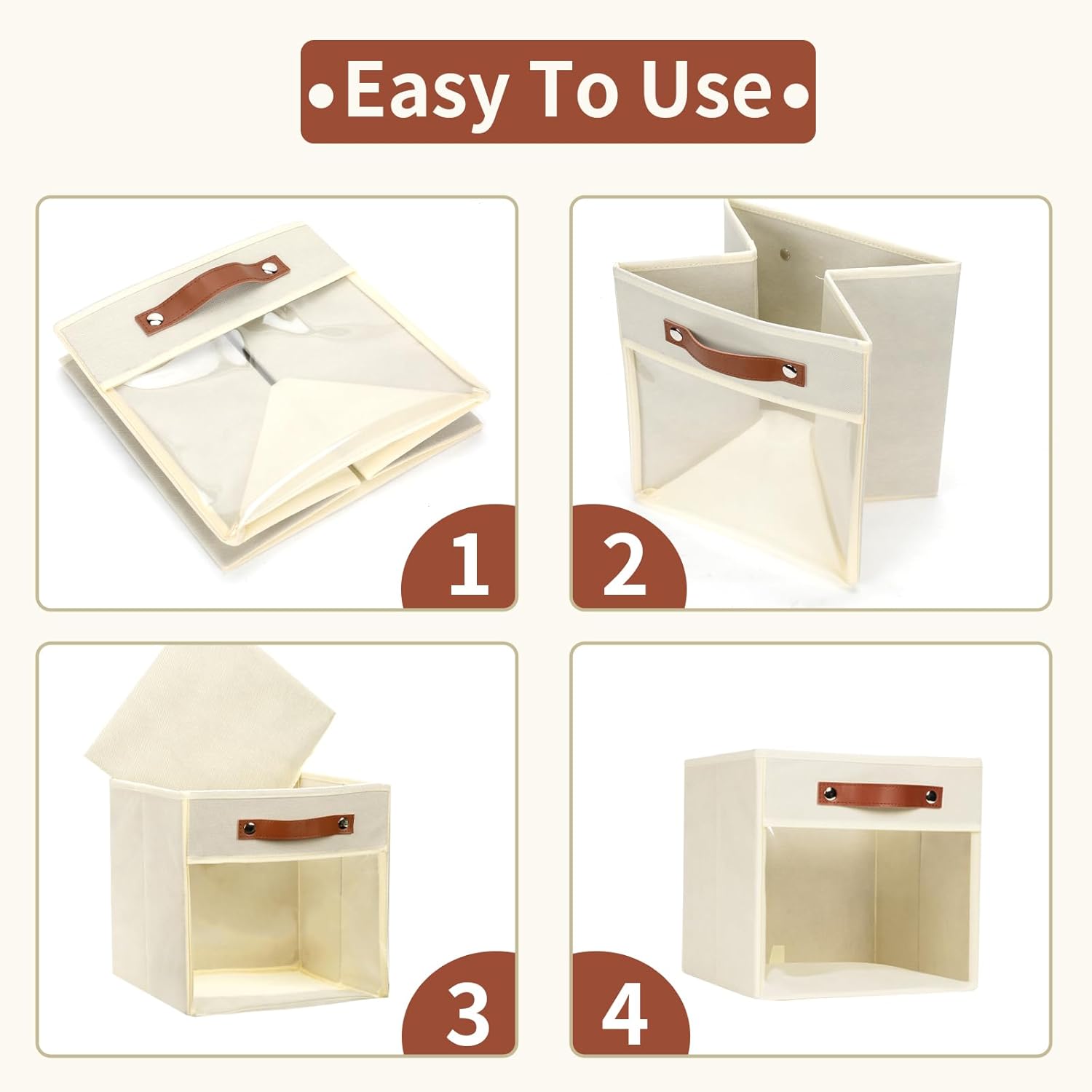 HNZIGE 11 x 11 Storage Cubes Bins for Storage Organizer,Shelf Fabric Storage Bin for Cube Organizer, Canvas Cloth Bin,Cubby Decorative Cube Organizer Bin for Cube Storage Blanket Home(Cream 6 PCS)