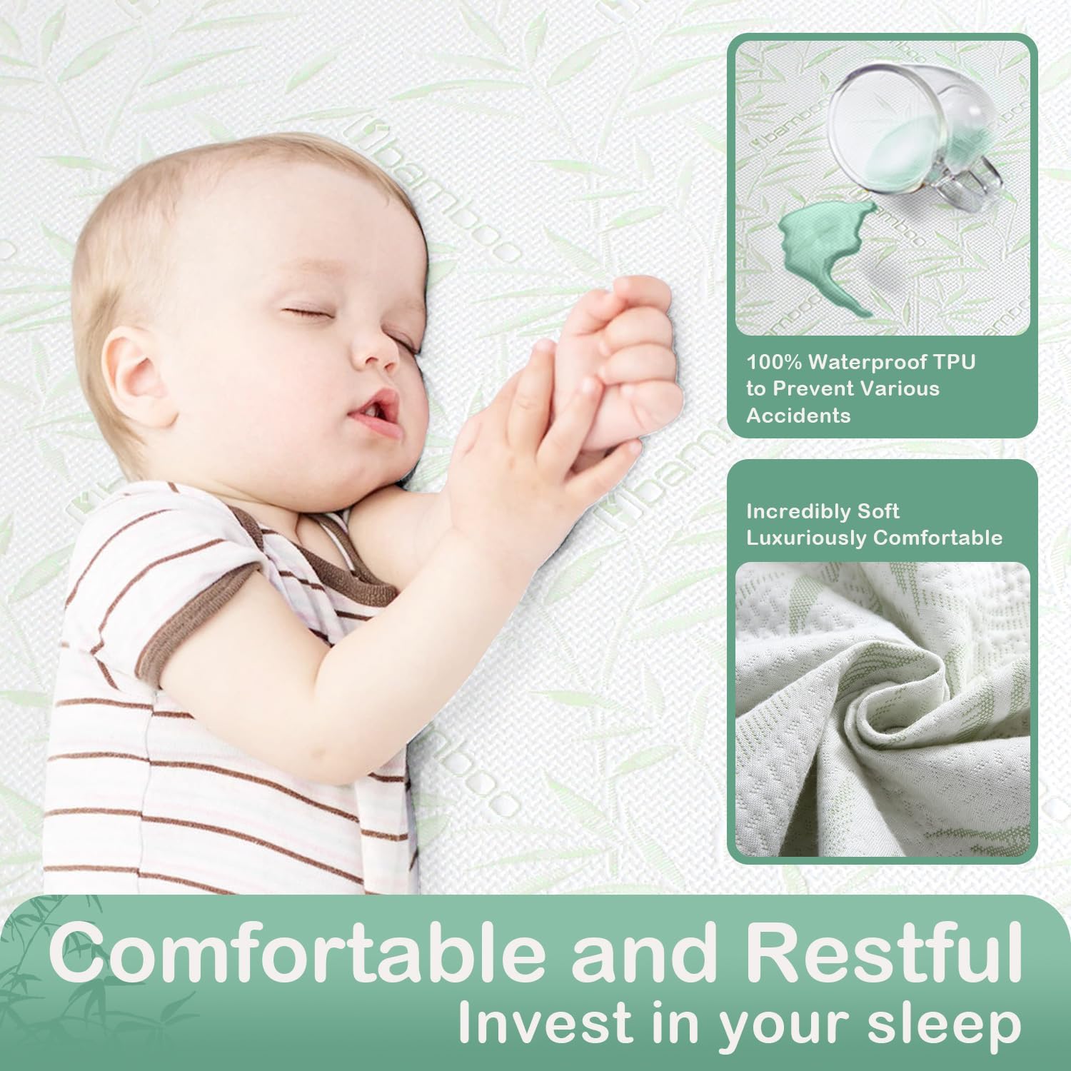 - 【Waterproof Mattress Protector】(60” x 80” Queen Size) Experience the ultimate in protection and comfort with our waterproof mattress protector featuring an upgraded TPU waterproof layer. Enjoy exceptional waterproofing without sacrificing breathability, ensuring your mattress remains free from all liquid mishaps and stains. Defend against spills, stains, and more, while enhancing the longevity of your mattress investment!