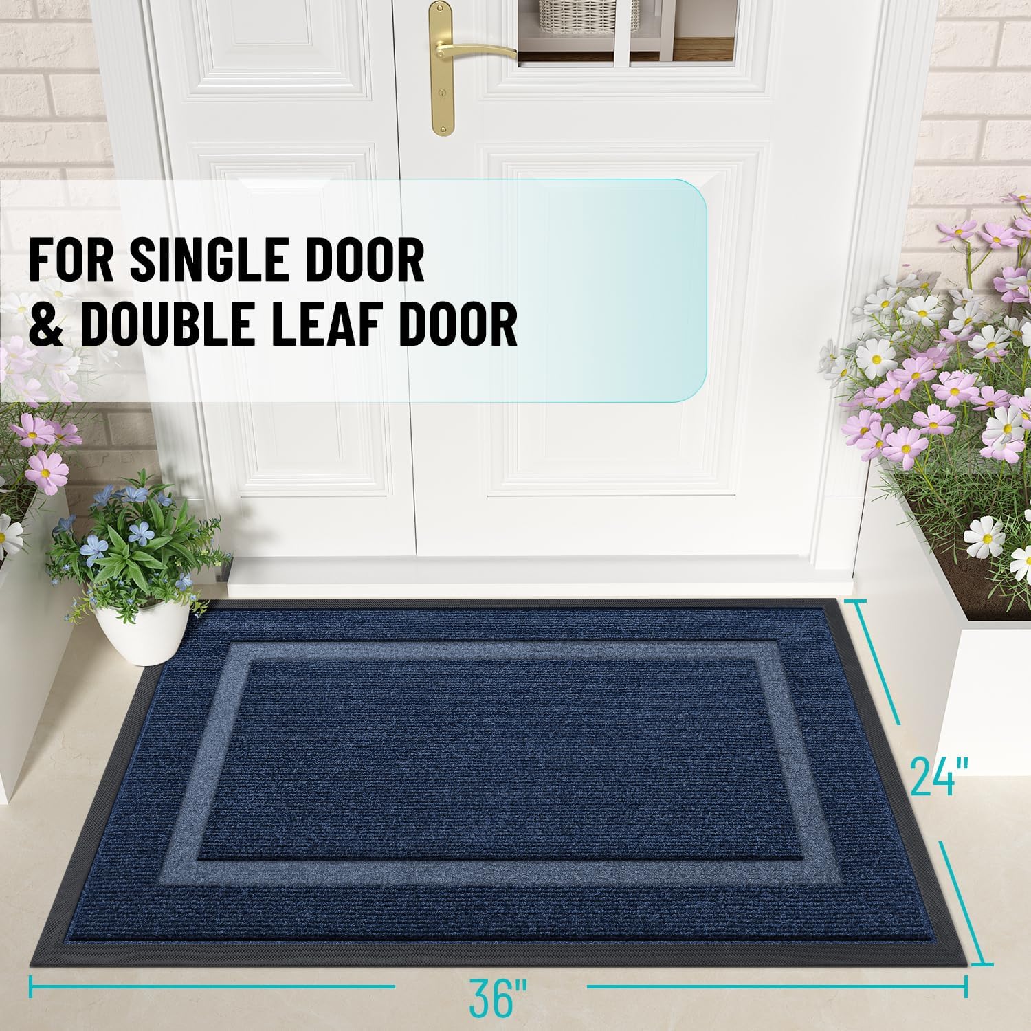 OLANLY Front Door Mat Indoor Outdoor Entrance, Waterproof All-Season, All-Weather Doormat, Sturdy Natural Rubber, Fade Resistant, Low Profile, Easy Clean Patio Porch Entryway Mat, 36x24, Blue