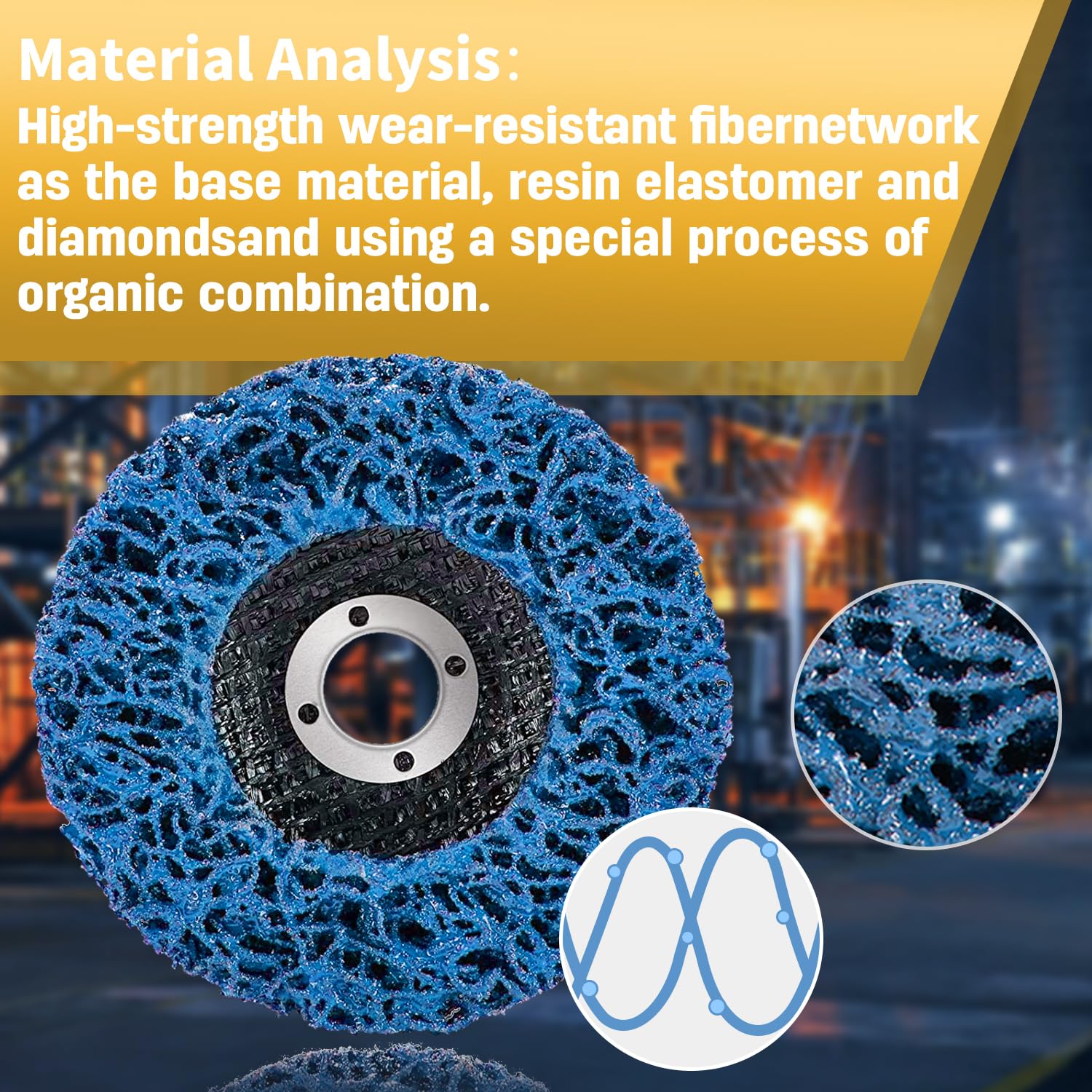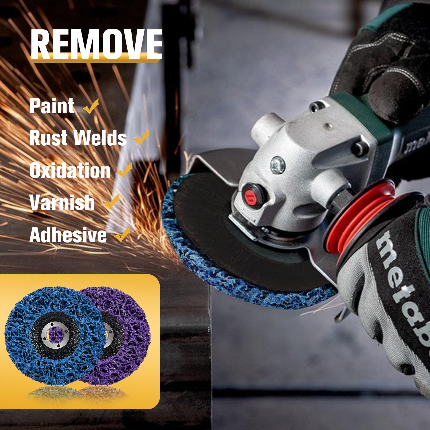 - 【Cleaning and Stripping】 The paint stripping wheel boasts robust functionality, capable of tasks such as grinding welding joints, removing burrs from oil pipes, ceramic polishing, paint stripping, rust and oxide removal.