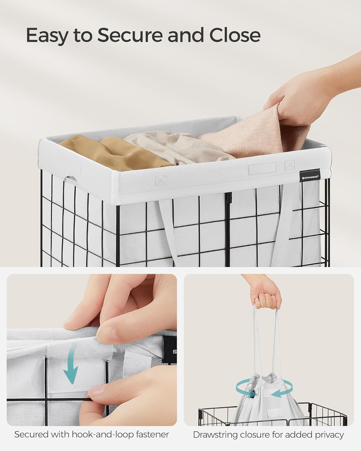 SONGMICS Laundry Hamper, 11 Gal. (50L) Laundry Basket, Collapsible Clothes Hamper, Removable and Washable Liner, Metal Wire Frame, for Bedroom Bathroom, Cream White ULCB150W01