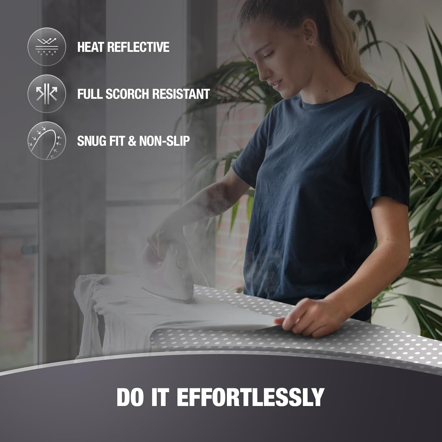 - EASY & QUICK IRONING : Accelerate and make simple your ironing process with our innovative ironing board cover. Heat reflective coated that reflects heat rather than absorbing it, this ironing board cover ensures faster and more effective ironing. Also the cover remains securely in place during use, thus you can finish your work more effortlessly.