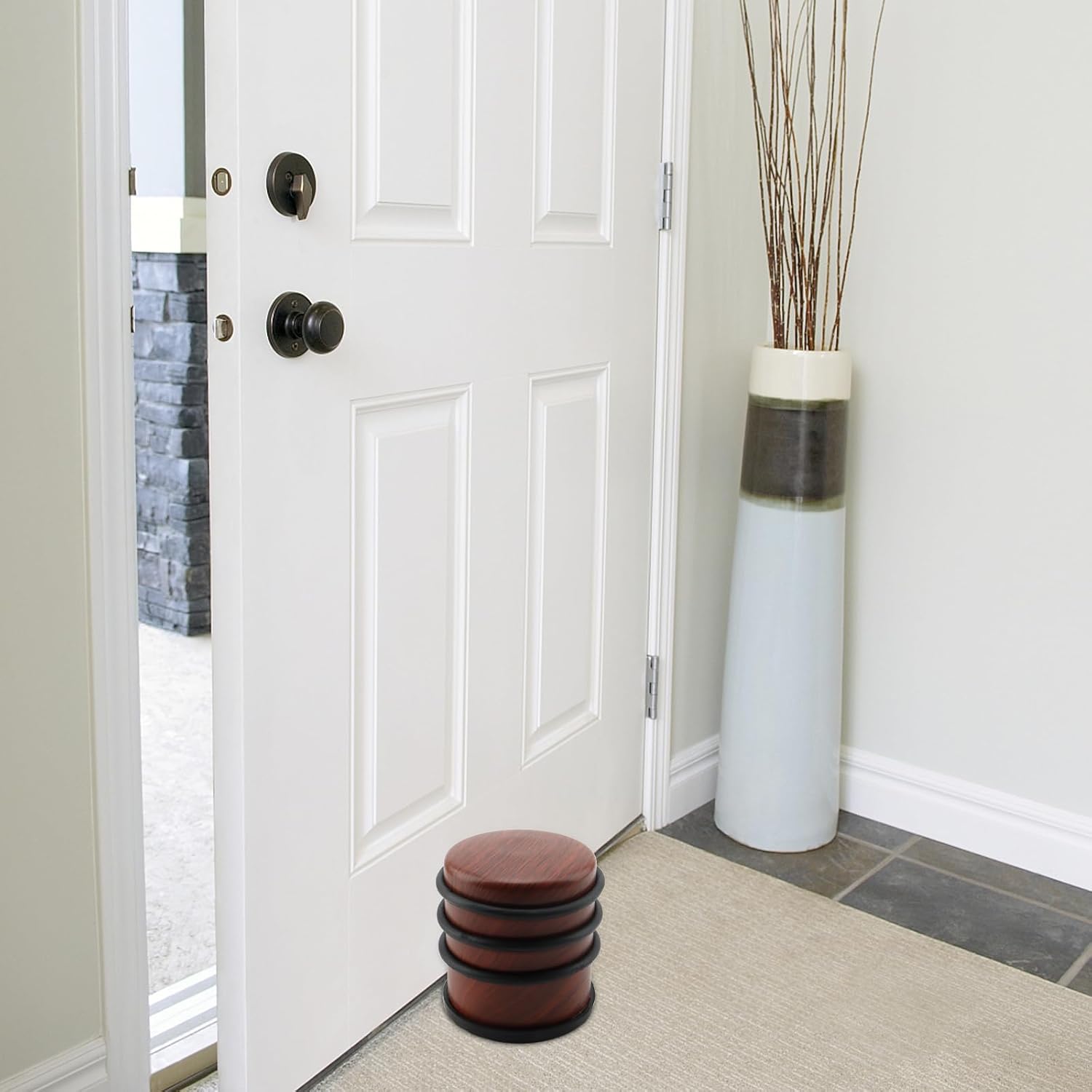 KINJOEK 4 PCS 1KG Heavy Duty No Drill Door Stopper, Stainless Steel Door Stop, Surrounded with Protective Rubber Bands Anti-Slip Door Wedge for Office, Home, Garage, Laundry Door, Brown Te