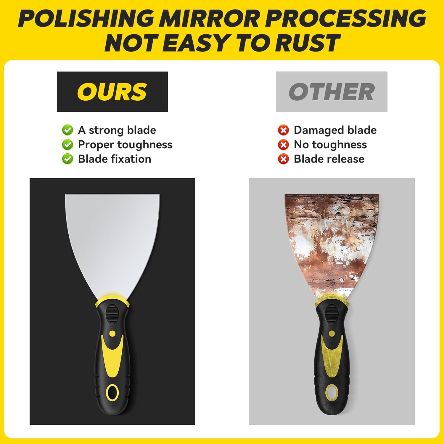 - Multi-use Tool: These putty knives are not only suitable for applying putty, puttying windows, scraping paint, removing loose putty or paint, removing vinyl or paper wall coverings, and patching dents, cracks, and holes in plaster, but also for wallpaper, applique, backing, repair, paint, plaster, and other tasks