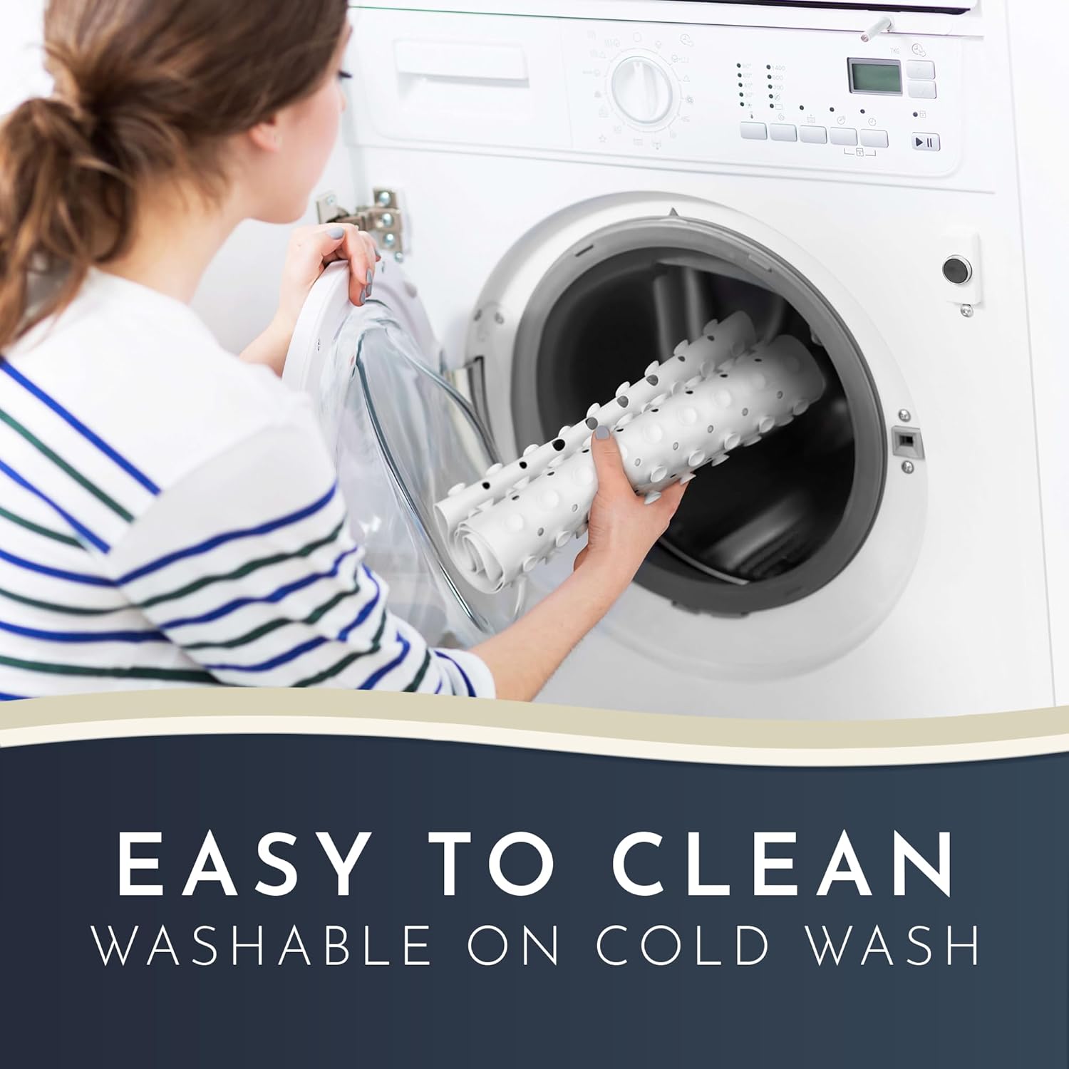 - Mold & Mildew? Not a Chance! Our shower non slip is machine washable on cold wash. The shower anti slip mat has extra large holes so the water can circulate & drain optimally - no matter where the drain is.