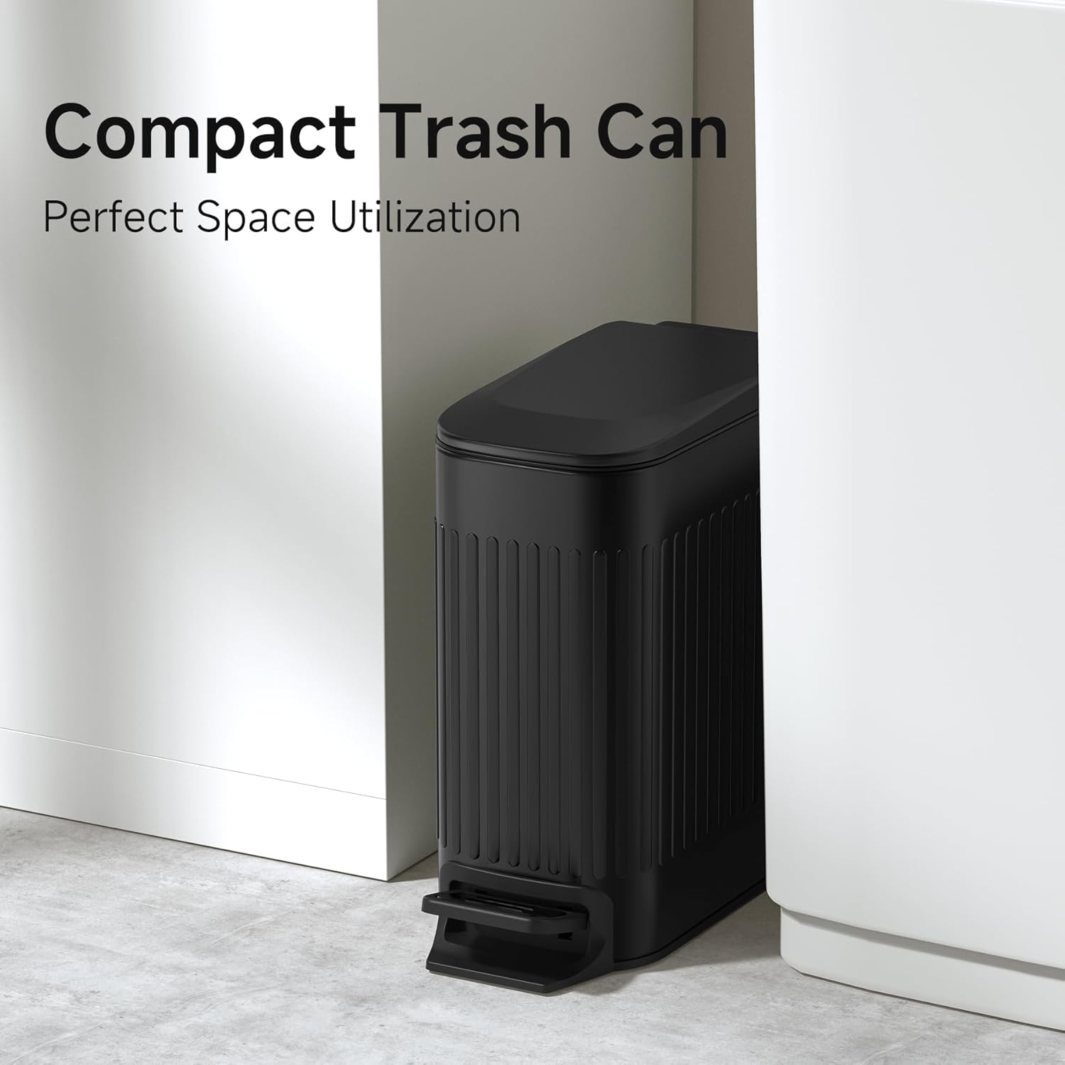 TIPGO Slim Bathroom Trash Can with Lid Soft Close, Step Pedal, 6 Liter / 1.6 Gallon Stainless Steel Trash Bin, Small Garbage Cans for Bedroom, Office, Kitchen (Black)