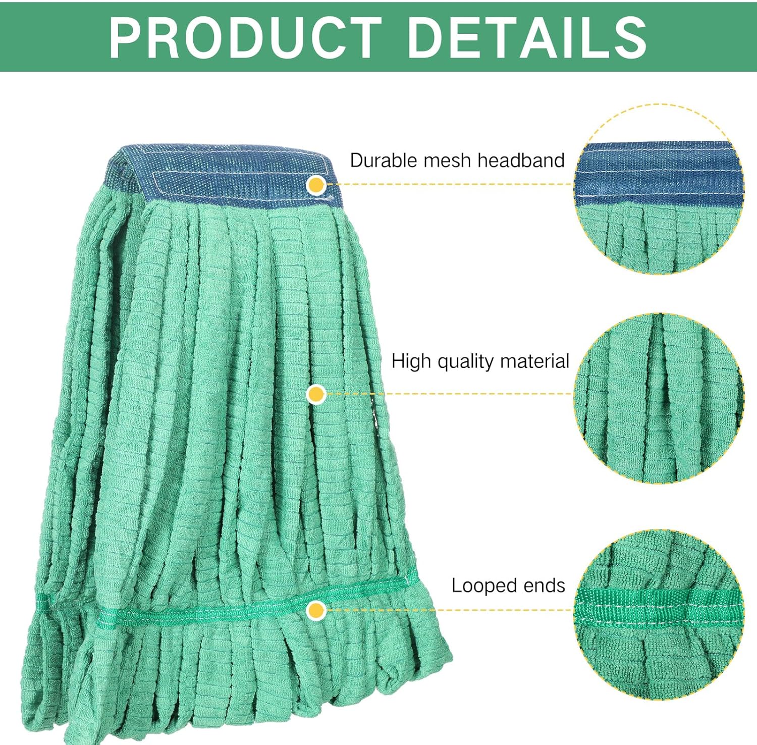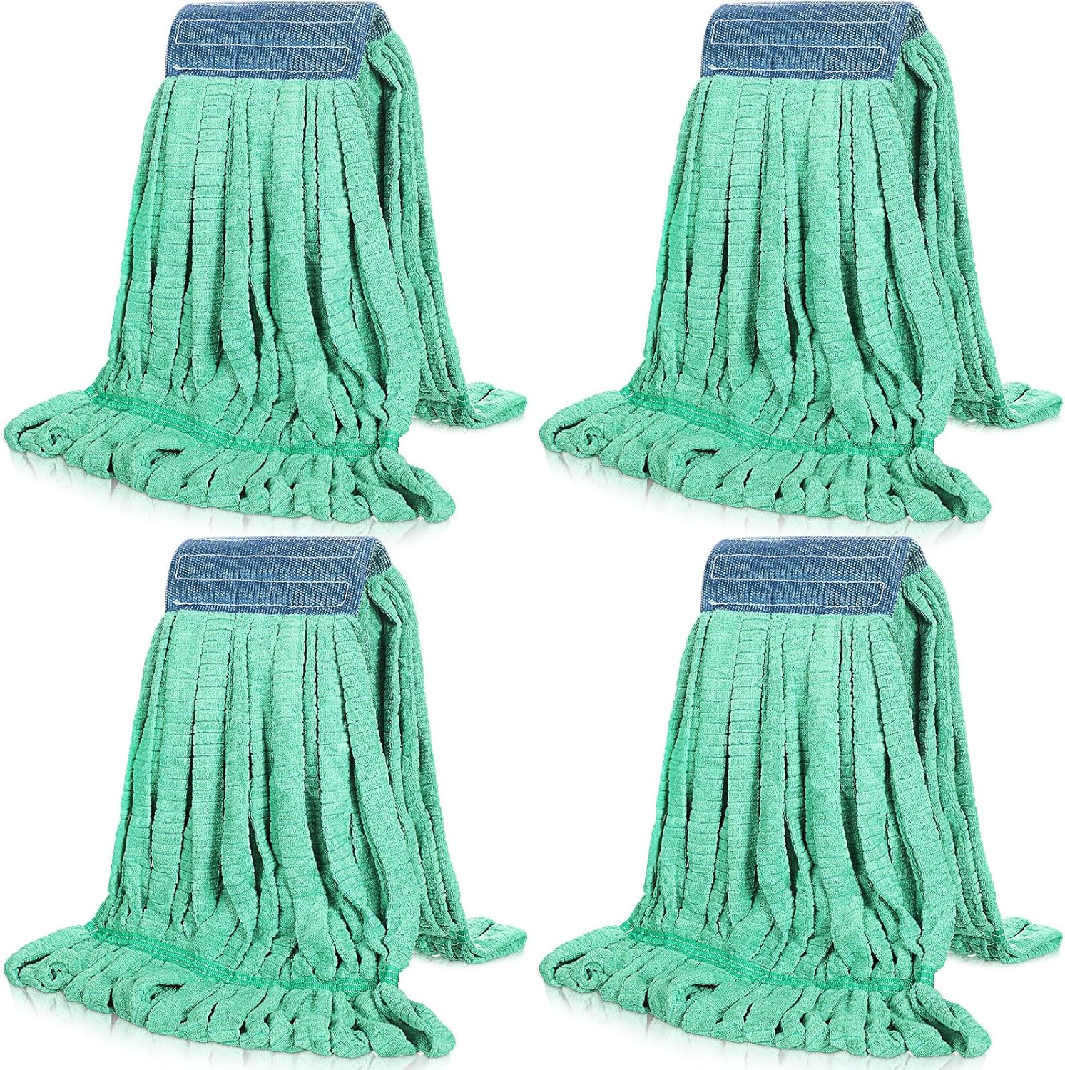 Lallisa 4 Pcs Commercial Mop Head Replacement Tube Microfiber Industrial Looped End Mop Heads Refill for Floor Cleaning for Home Commercial Industrial Use(Large,Green)