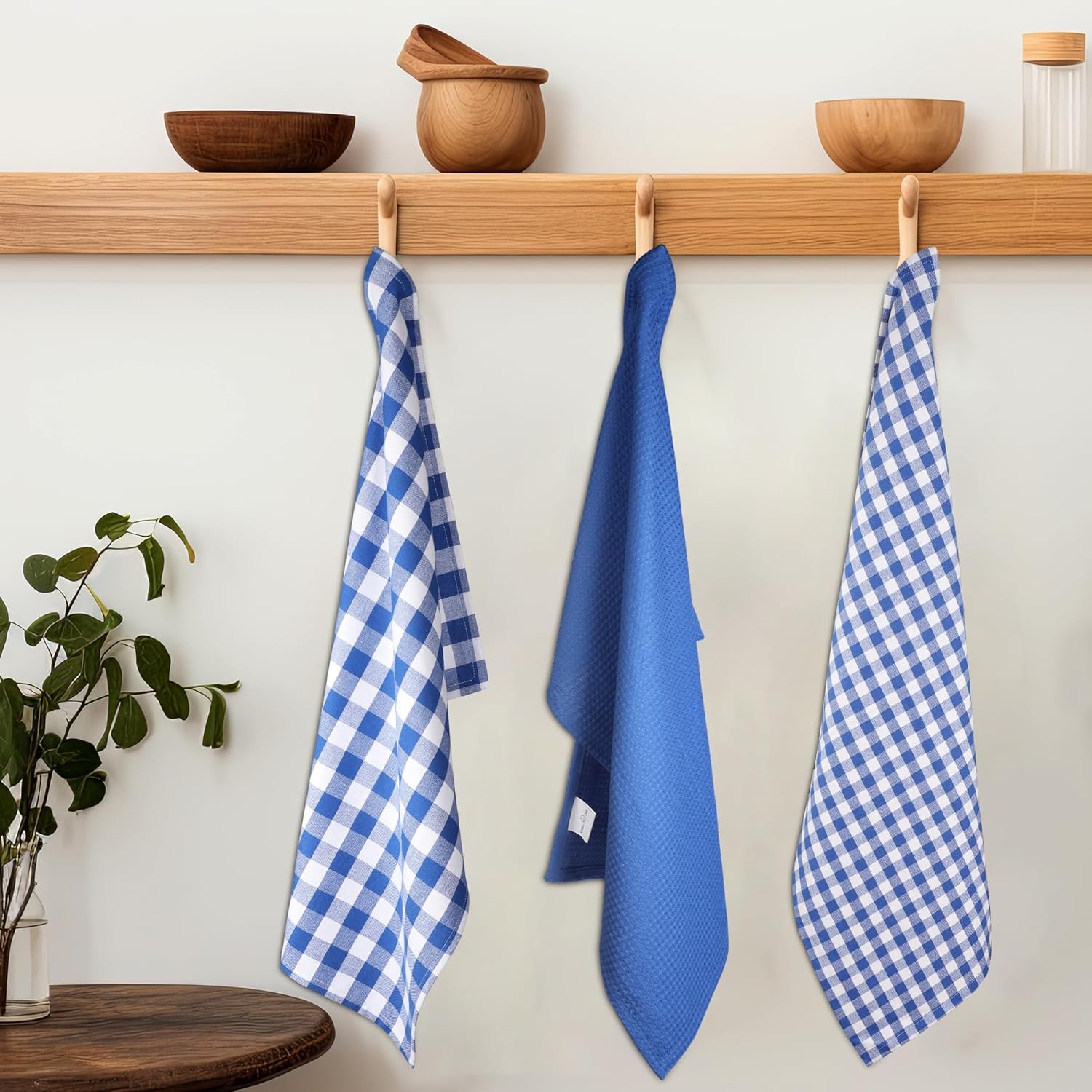 Kitchen Towels Set of 6 Soft Premium Cotton Highly Absorbent Dish Towels 18x28 Inches, Washable & Reusable Tea Towel, Quick Drying Dish Cloths with Hanging Loop - Blue/White, Checks