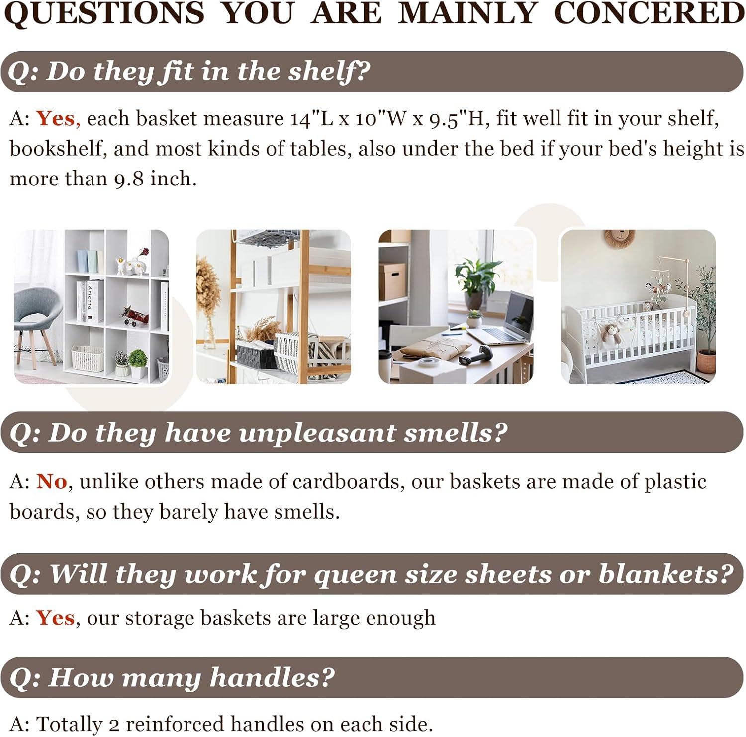 - 【FIT RANGE】 Comes with 8 pack for better value, these cloth storage bins could meet all your family storage needs, also for college dorm, RV, school, baby nursery. Measuring 14” (L) x 10” (W) x 9.5” (H), they could work as storage baskets for shelves, closet storage bins, shelf bins, under bed storage bins, or for changing tables.
