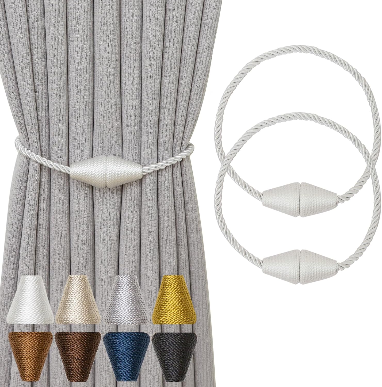 Magnetic Curtain Tiebacks 2 Pack Outdoor Rope Curtain Tie Backs Decorative Window Treatment Holdbacks for Home Decorative Curtain, White