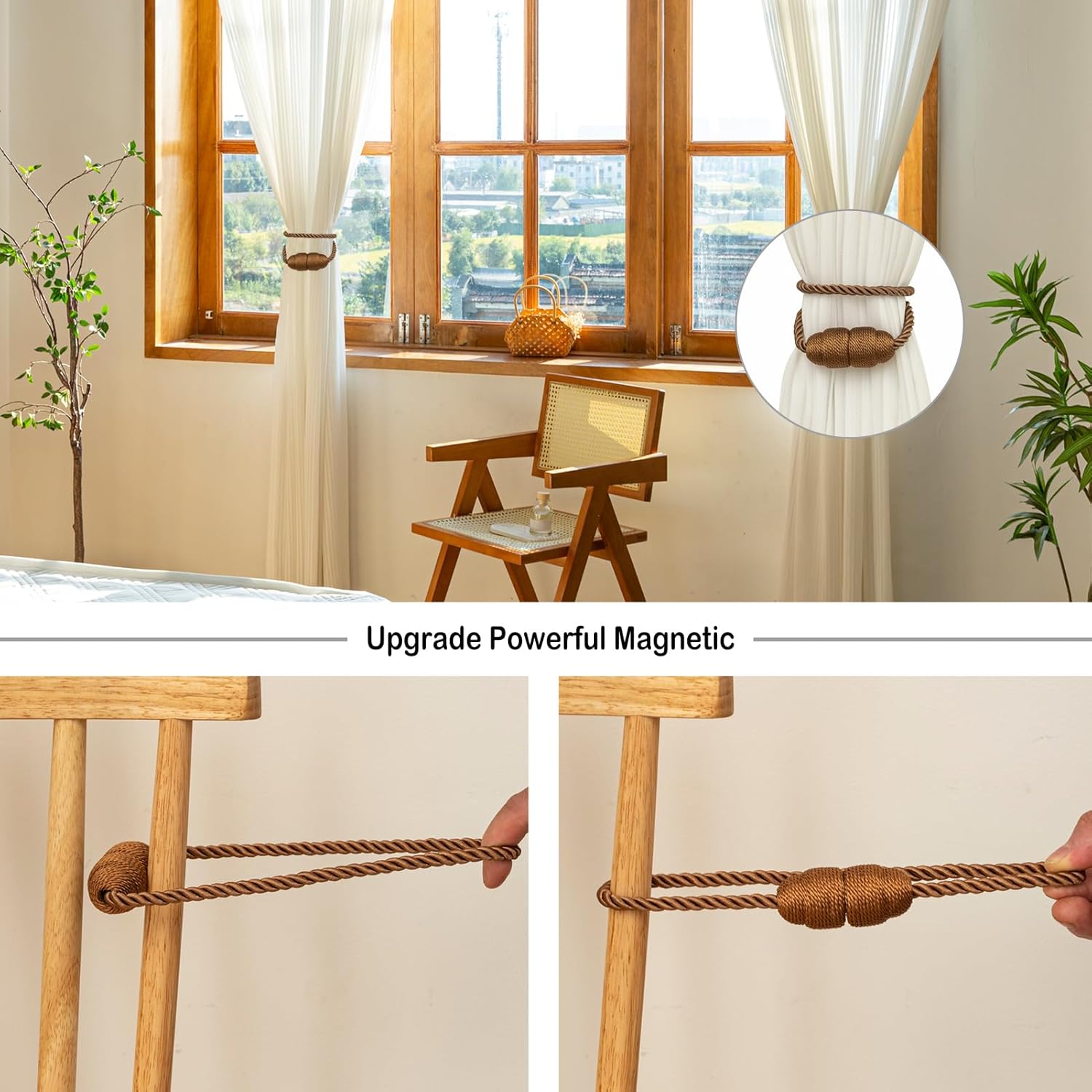 Magnetic Curtain Tiebacks Rope Curtain Tie Backs for Curtains 8 Pack Curtain Holders for Drapes Decorative Window Curtain Holdbacks, Khaki