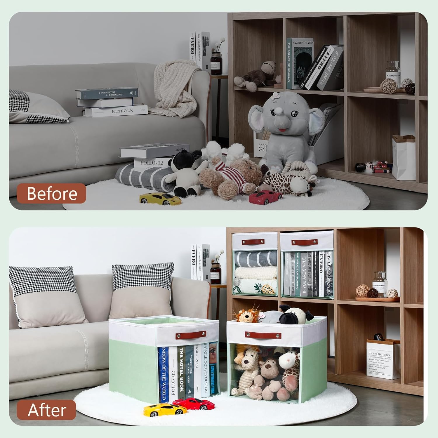 - 【Clear Cube Storage Bins】We have made an upgrade to the 13x15x13 storage cube bins by incorporating a clear window design. This feature enables you to easily and precisely view the cubby cubes for cube organizer stored inside. There will be no need to dig through the contents anymore.This will improve the efficiency of your search, which in turn will help you save valuable time and effort.