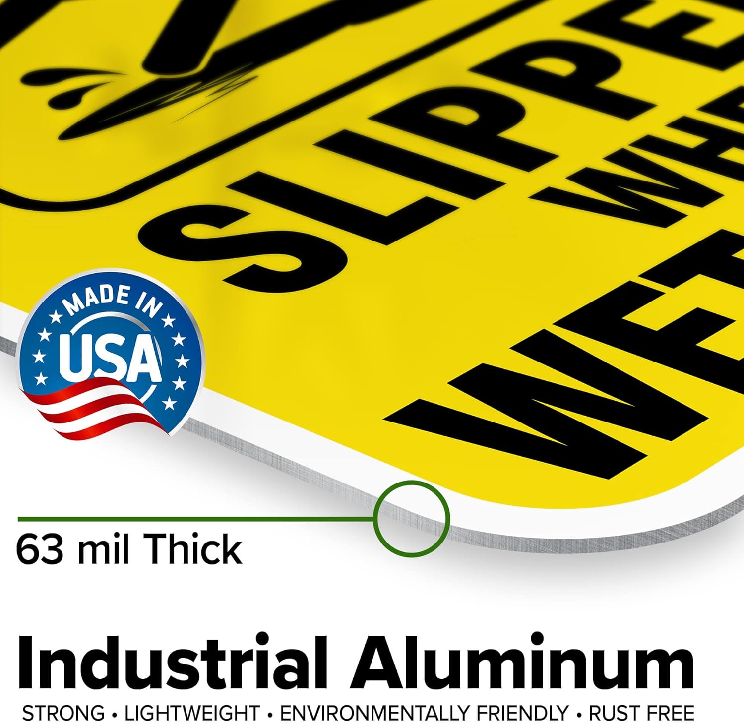 Caution Slippery When Wet Sign or ICY Sign, 12"x18" Aluminum, Fade Resistance, Indoor/Outdoor Use, USA MADE By My Sign Center