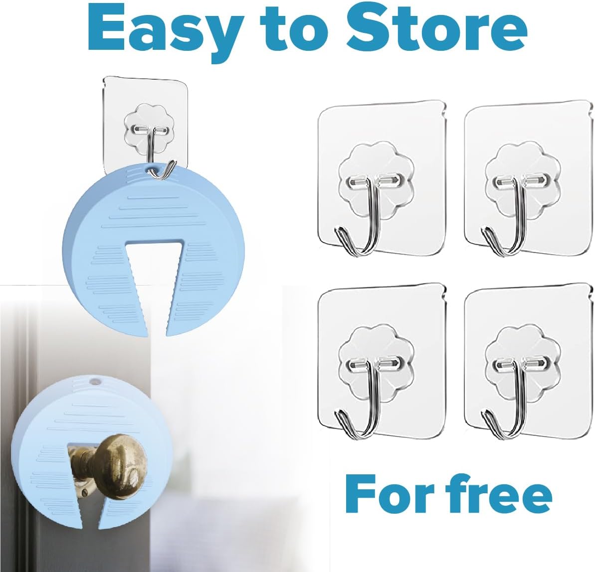 - ๐๐๐ฌ๐ฒ ๐๐ญ๐จ๐ซ๐: Just clasp it to the doorknob/door handle or hang it on the hook through the hole on the product when not in use, 4 adhesive hooks come free, no more missing doorstops!