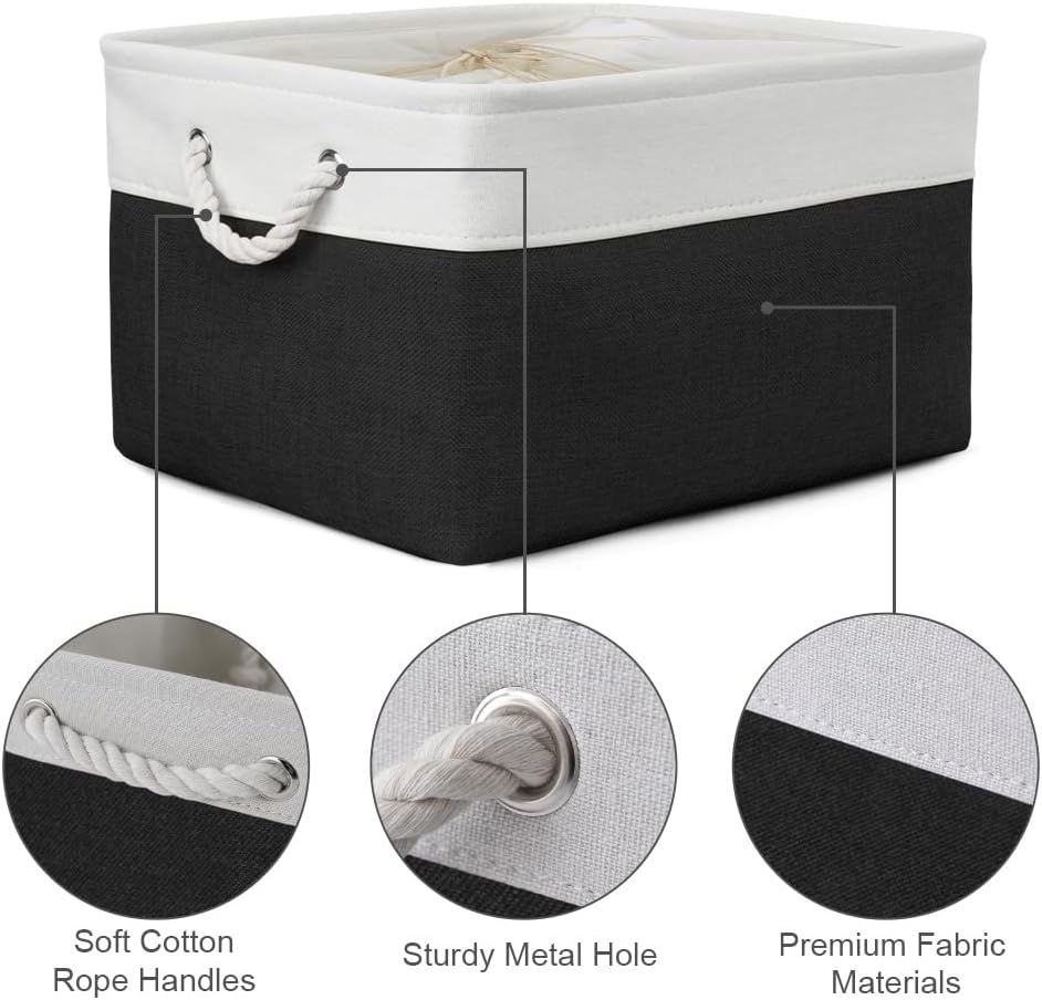 TheWarmHome Organization and Storage Basket for Organizing - Jumbo 3 Pack 17.7x13.8x9.7 inch Fabric Storage Cubes for Closet Gifts Organizer Empty Book (White & Black)