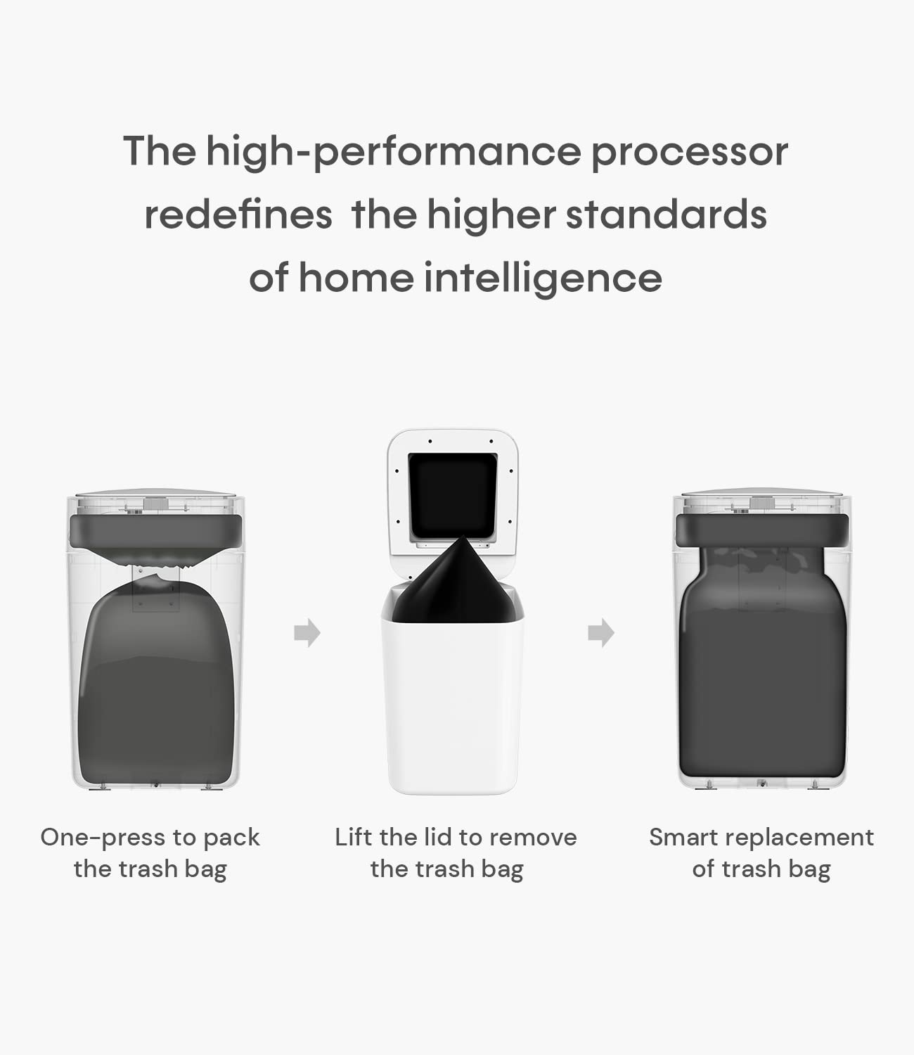 - ăOverload SealingăIt will automatically sense the location of the excess trash that exceeds the trash can and adapt to the height of trash and extend the trash bag to seal. Compared with T AIR X and T Air Lite, it has no pull strap and can automatically open the lid for overload packing.