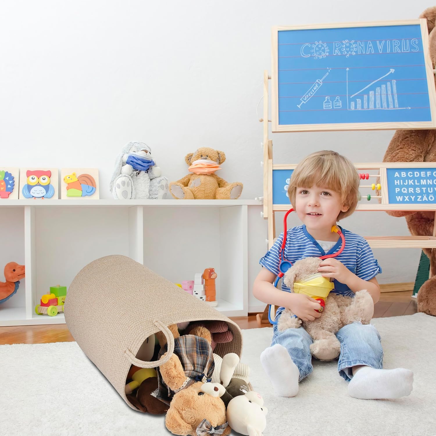 - Tall storage basket with handles: This cute tall round rope basket is designed with long and sturdy handles, making it easy to move around. As the clothes storage basket is made of soft cotton rope, it has no sharp edges and will not scratch your furniture or floor.