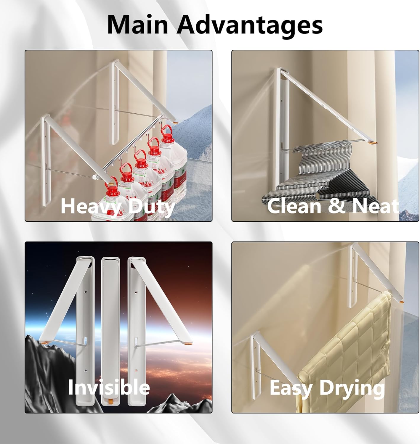 - ăFoldable & Retractable Designă: The coat hanger racks are specially designed to save space. If there are not so many space to hanging clothes, it will be your good choice. When not in use, it can fold to achieve invisible effect and never become mess. Suit for Laundry room, Balcony, Bathroom, Bedroom, Closet.etc.