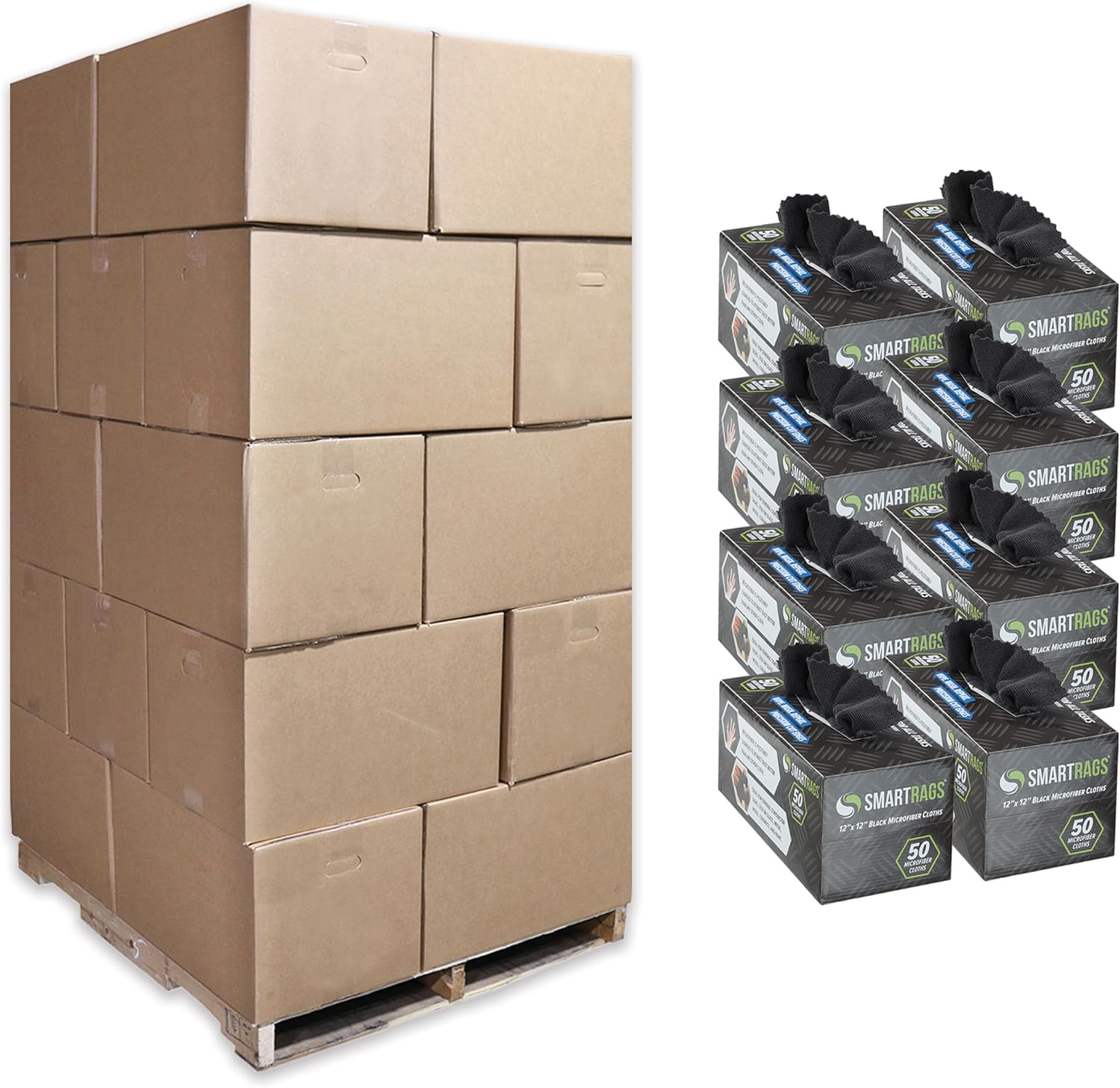 Arkwright Smart Rags in Box - (Pallet of 14400) Lint Free Microfiber Cleaning Cloth, Scratch & Streak-Free, Dispensable Wash Towels for Cars, Window Glass, and Auto Shop, 12 x 12 in, Black