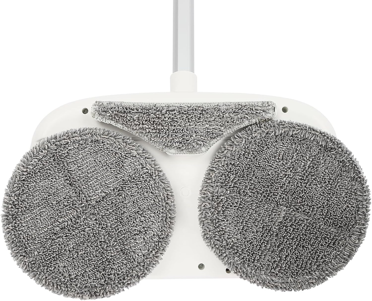 - ❏Excellent Cleaning Effect: The 40W powerful twin motors with 150 rpm speed, integrated 0.11gal water tank, push-button water spray function, equipped high-quality mopping cloths, and built-in high-performance lithium batteries allow for cleaning up to approximately 86.1ft² per minute while ensuring an excellent cleaning effect that easily removes a wide range of stubborn stains. It can also mop in 90° upright and 180° rotating planes to better clean hidden angles of the room.