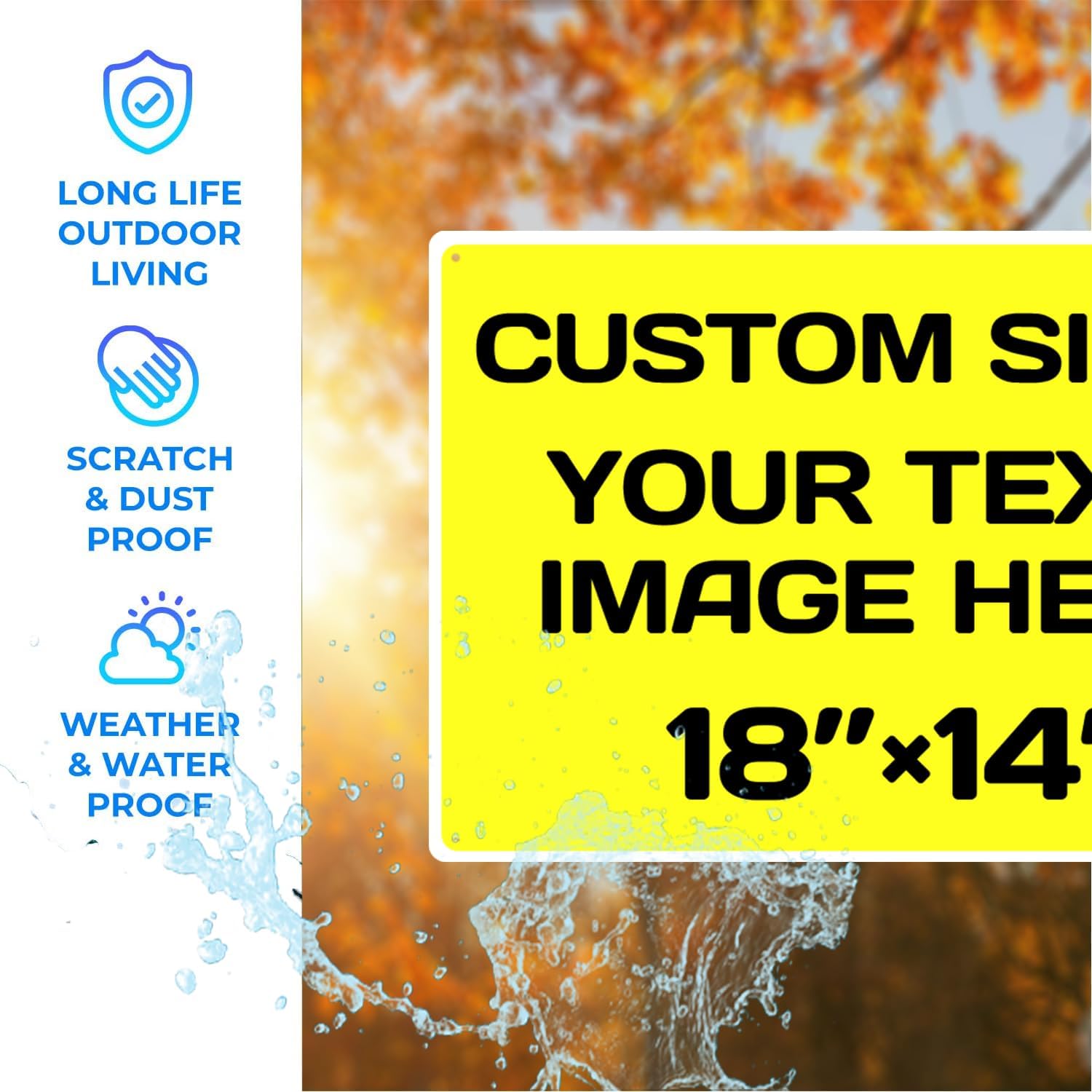 Repaly Personalized signs,Aluminum Weatherproof Metal Sign Multiple Sizes Custom Personalized Text And picture Here,hazard sign,garden sign,custom door sign,Customised business signs Yellow 18×14