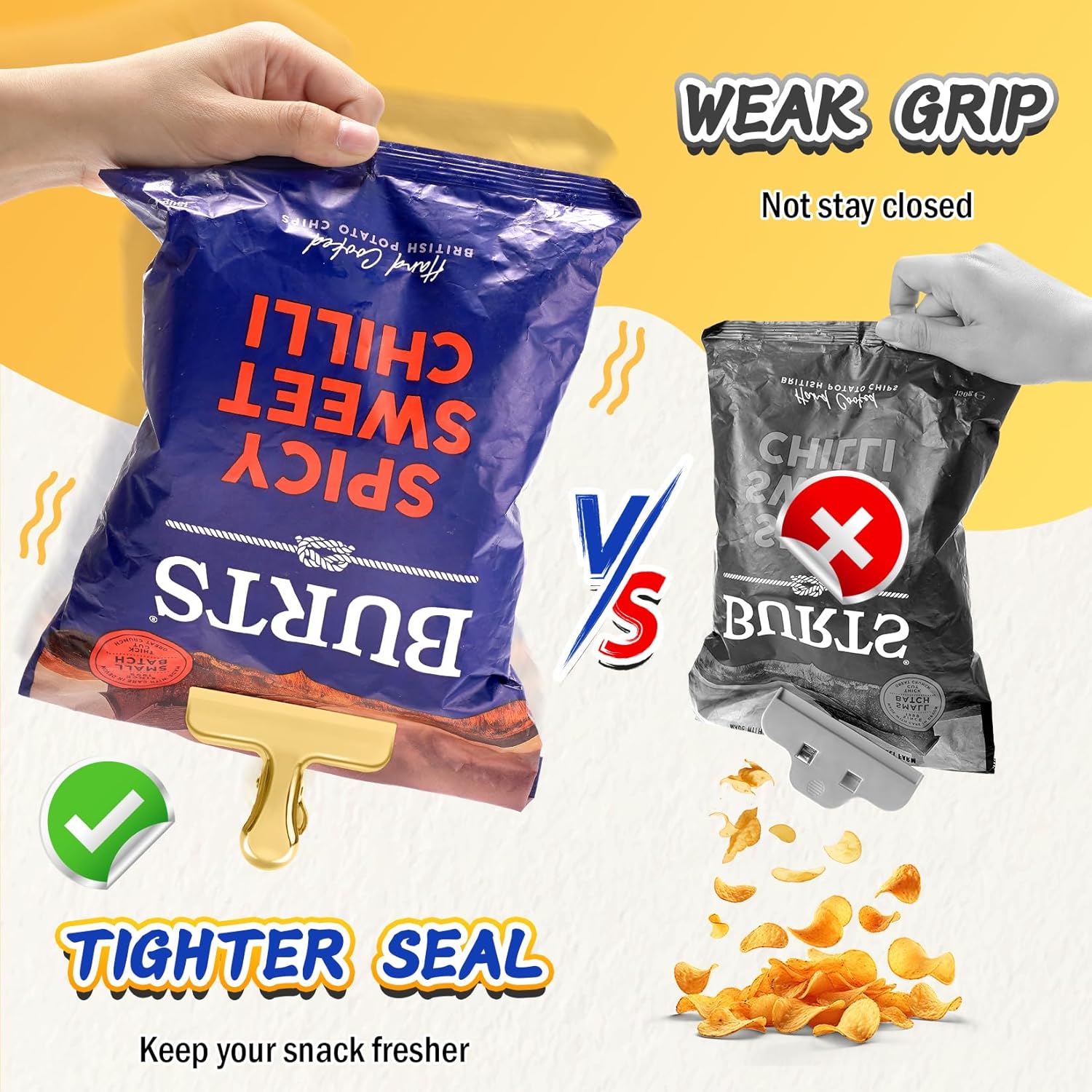 - Crafted for Longevity - These stainless steel chip bag clips boast premium coating for durability, with rounded corners for safety, outlasting plastic clips.