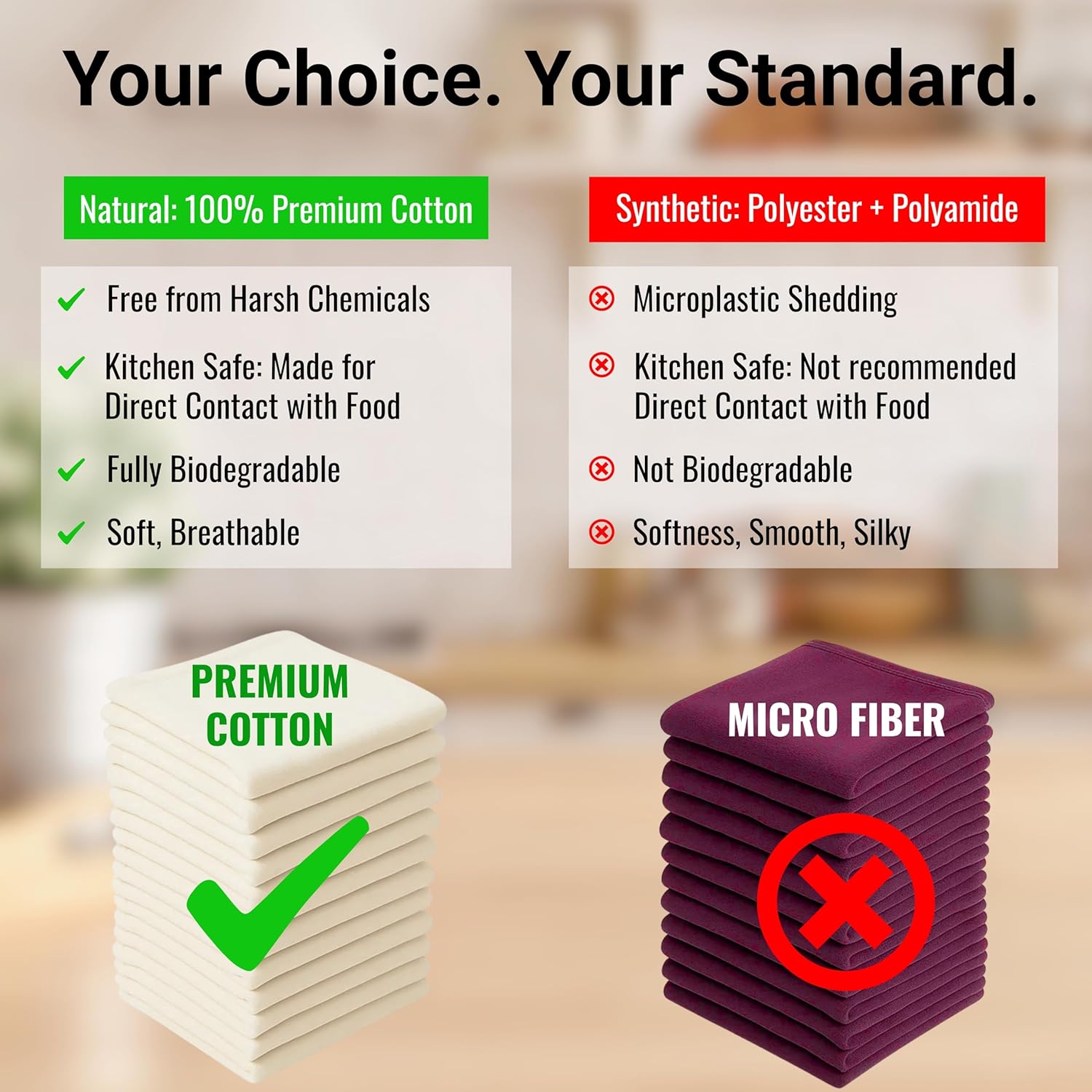 - PREMIUM QUALITY :These Dish Cloths are meticulously fashioned from 100% cotton fabric, guaranteeing a soft, thick, quick-drying, and remarkably absorbent. These superior-quality Kitchen cloths feature sewn edges and a convenient hanging loop, making them an excellent addition to any kitchen, bar, or farmhouse, enhancing the aesthetic appeal.