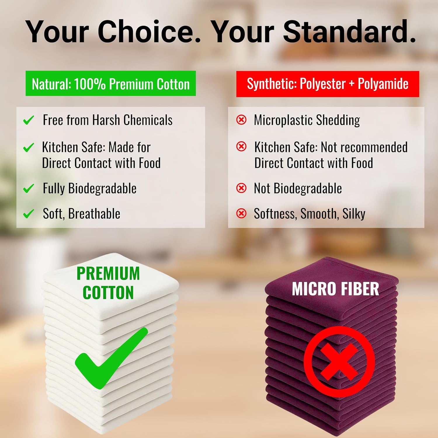 - MULTIPURPOSE: Their lint-free pure ring-spun cotton composition makes them perfect for drying glassware, hands and surfaces. Moreover, they excel at tasks like cheese straining, salad spinning, and even serving as reliable dough covers for baking.