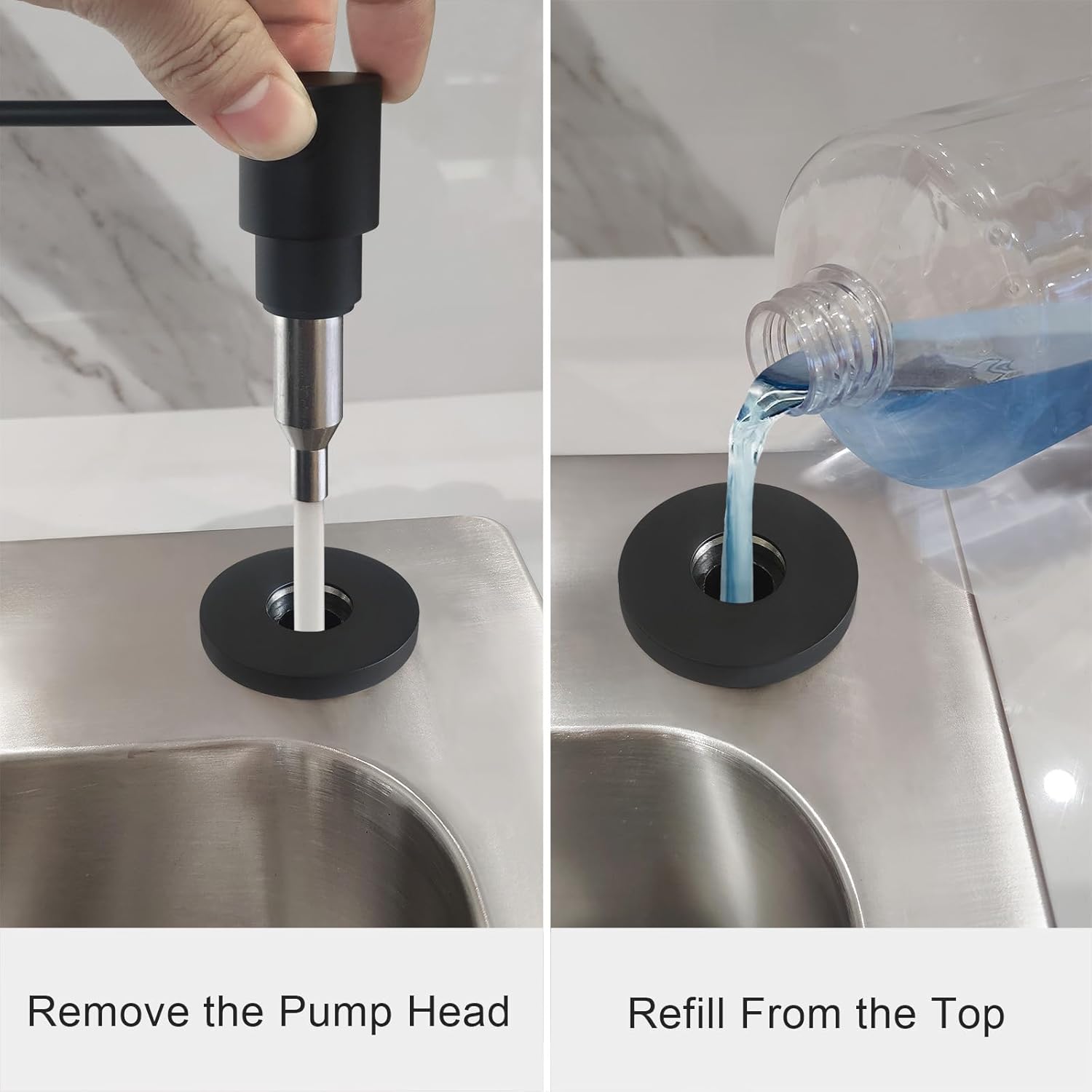 - Easy To Refill: Refillable from above the deck. Eadot kitchen sink soap dispenser let you free from crawling under the sink, top lifts up for easy refill from above the kitchen counter.