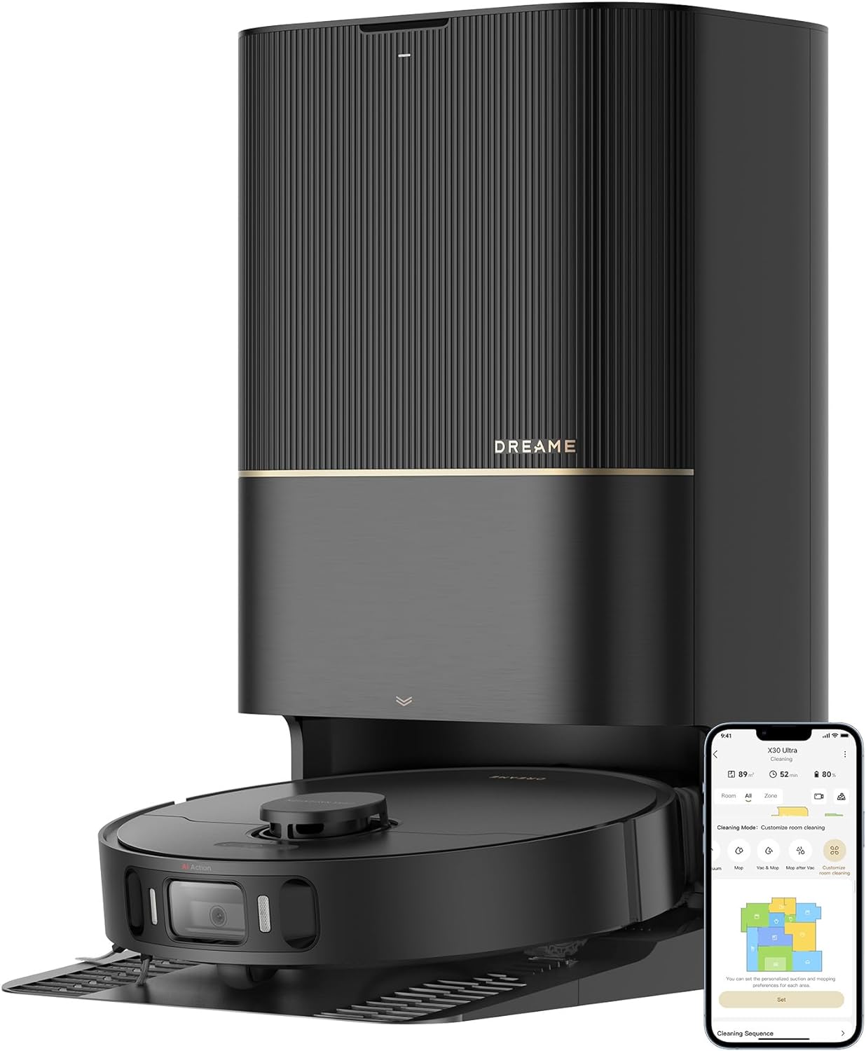 - AI Action and 3D Structured Light: X30 Ultra identifies and avoids up to 70+ types of objects* like shoes, cables, and others. With a built-in LED, your robot identifies obstacles and cleans efficiently in dim spaces and dark rooms. Experience detailed cleaning with top-notch features. Only support 2.4G WiFi.