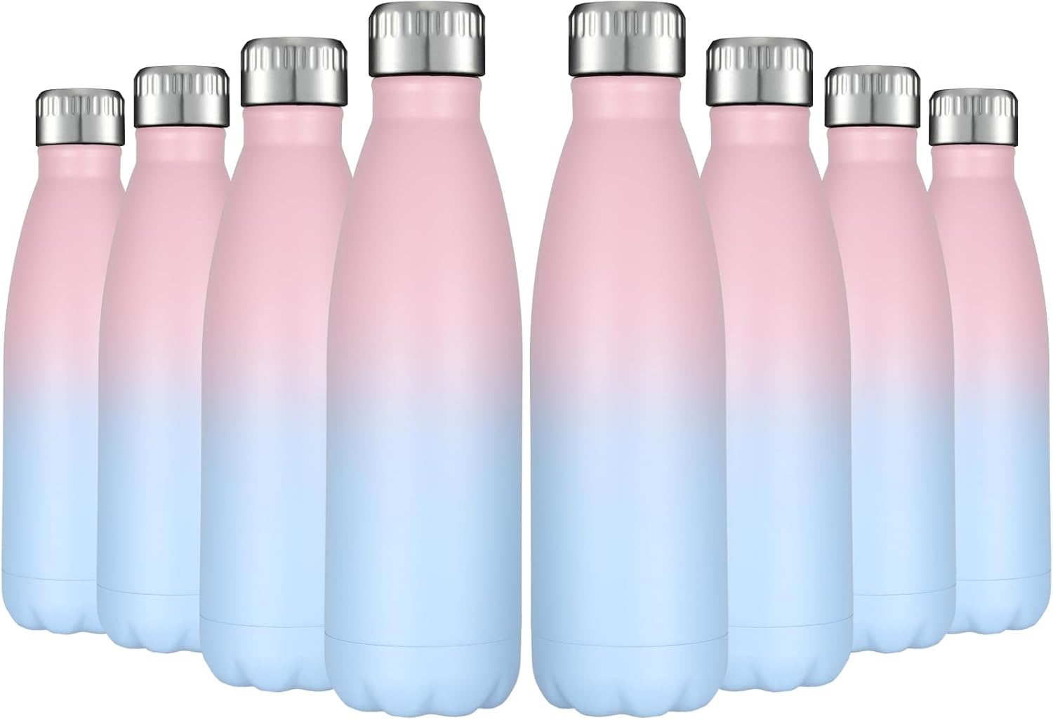 HASLE OUTFITTERS 17oz Stainless Steel Water Bottles Bulk, Vacuum Insulated Water Bottles Double Walled Reusable Metal Sports Water Bottles Keep Drinks Hot and Cold, Pink Blue, 8Packs