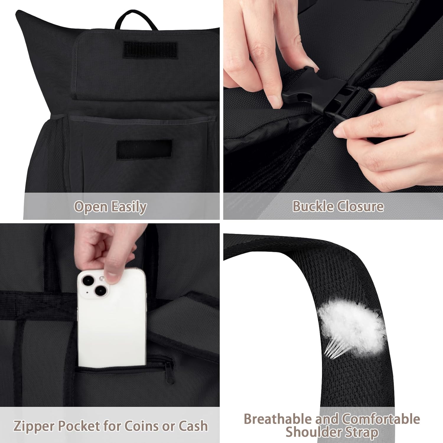 - Multi-pockets : This laundry backpack has front pockets, mesh bags on both sides, and there’s a back inner pocket with zipper; We've widened the front bag and the side mesh wash bags of our travel laundry bags to accommodate more items