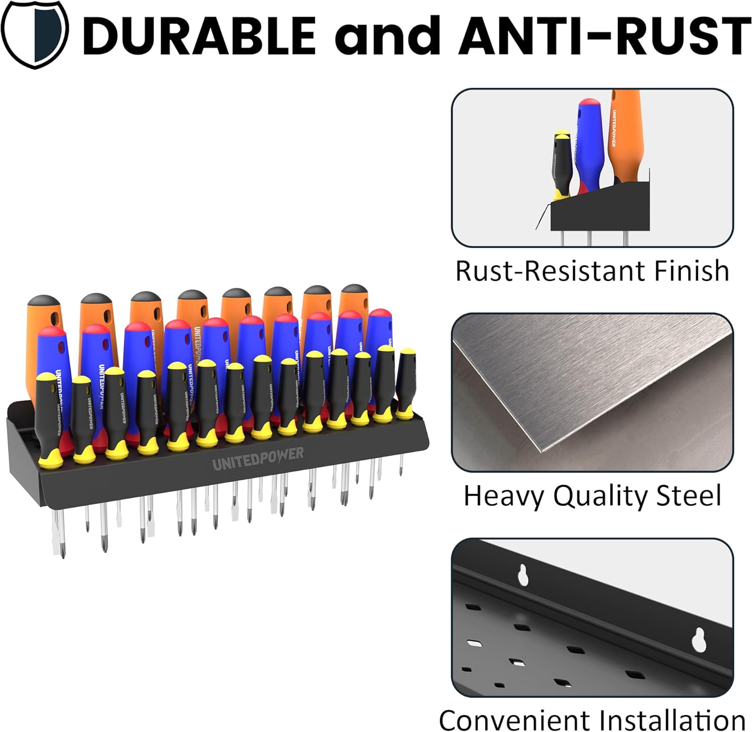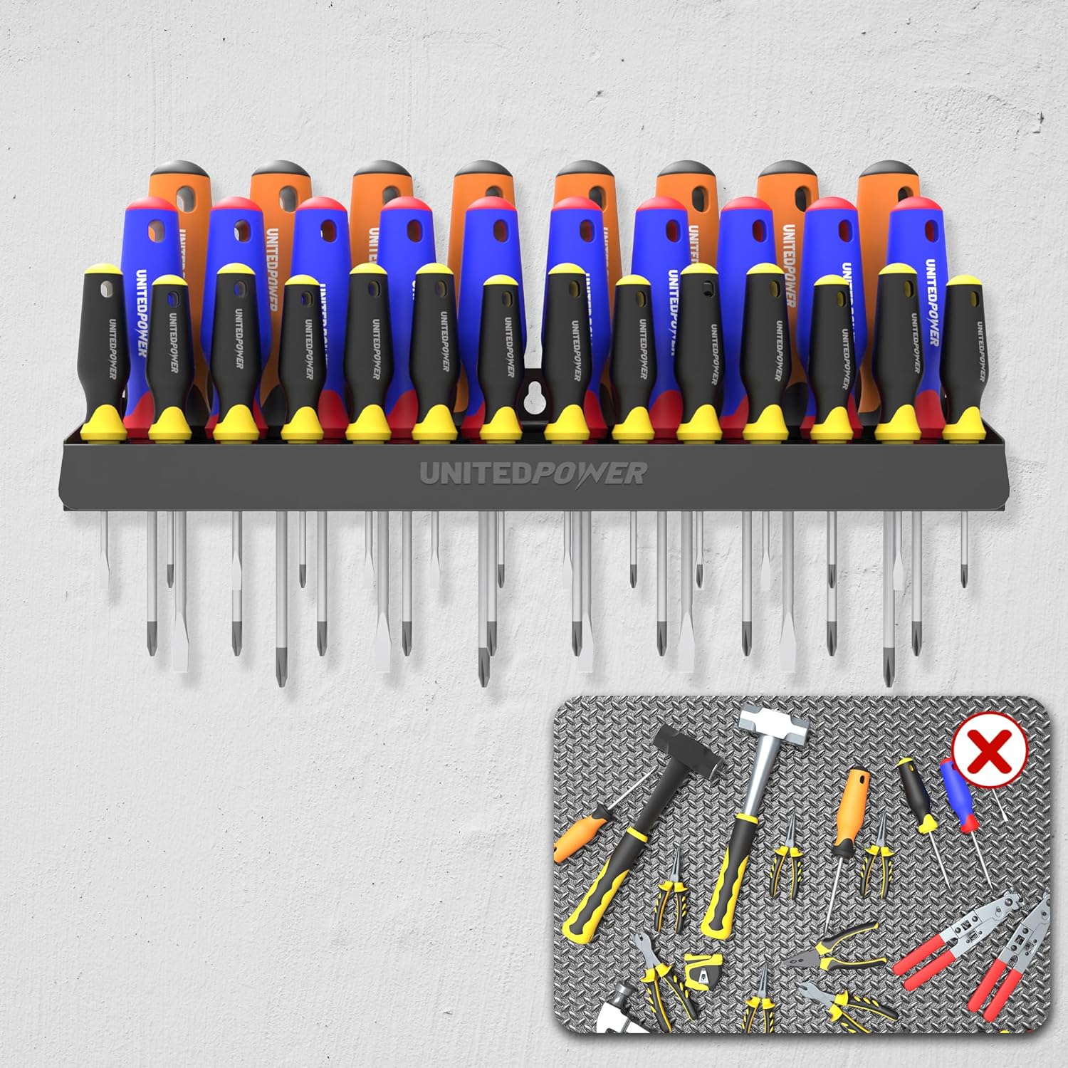UNITEDPOWER Screwdriver Holder, Wall Mount Storage Rack Organizer for Workshop, Shed, Garage, Home, Stores up to 32 Screwdrivers or Small Tools