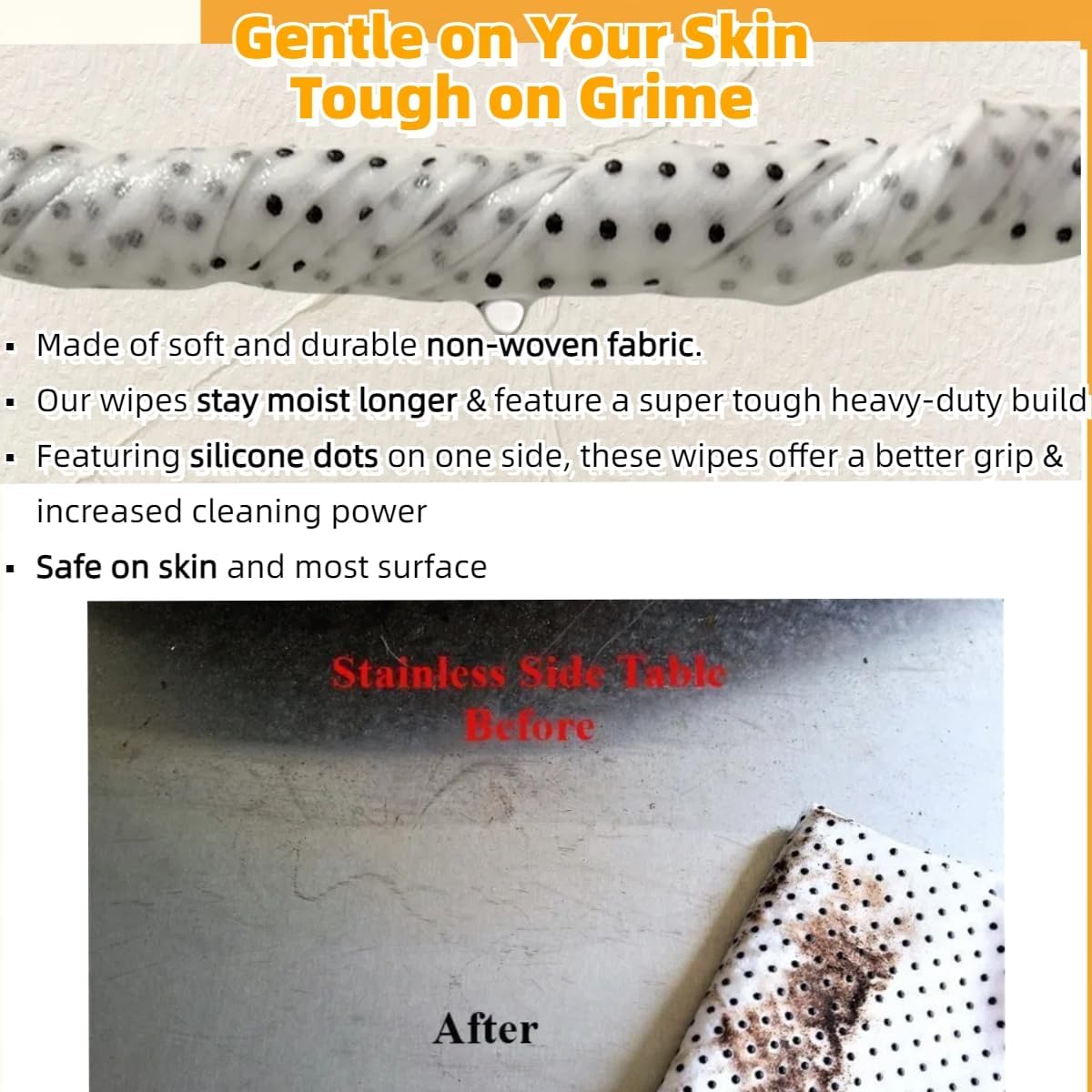 - Dual-Action Grill Wipes Design: Featuring silicone dots on one side, these wipes offer a better grip and increased cleaning power, making it easier to tackle even the most stubborn stains on your grills, grates, and cooking surfaces.