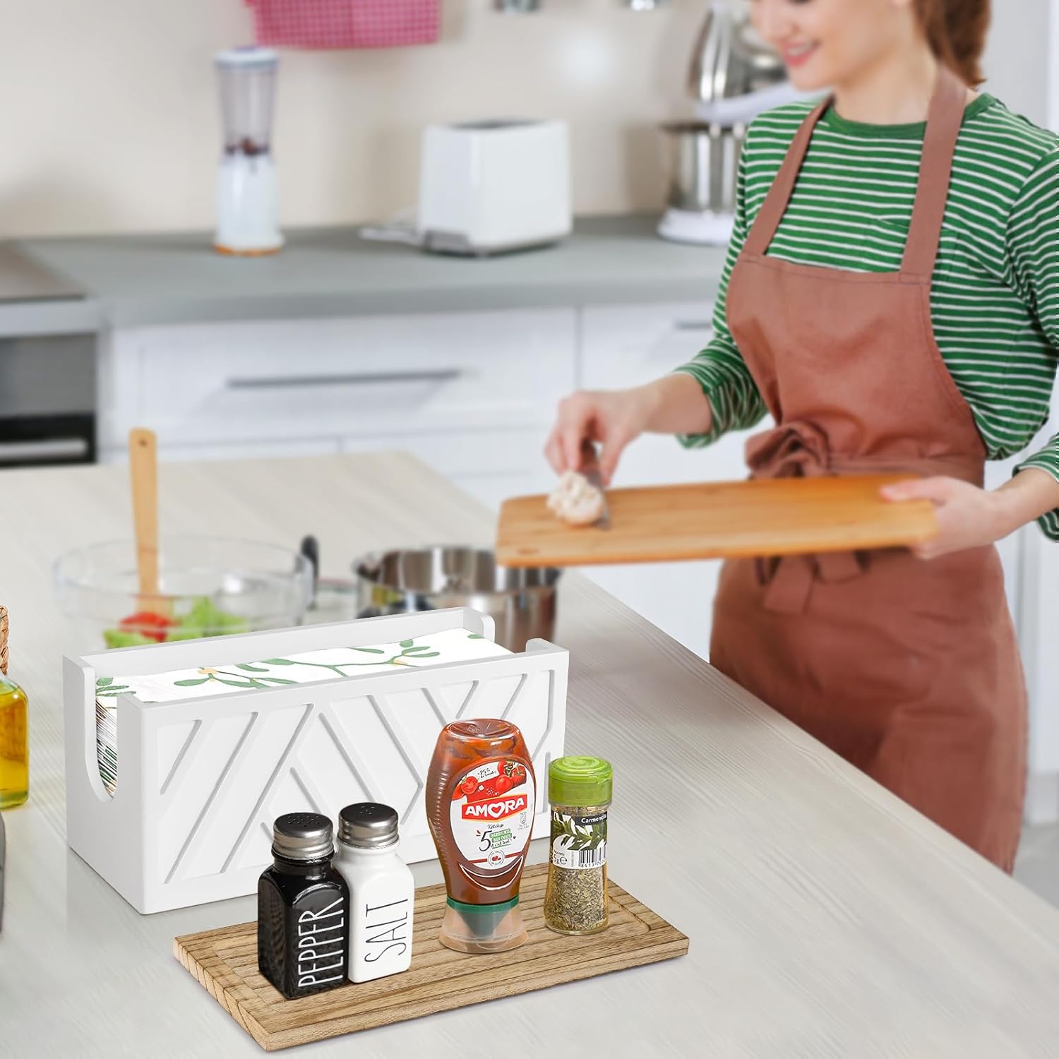 - 【Practical Paper Towel Holder for Farmhouse Decor】Our bathroom napkin dispenser is practical and beautiful. With wide and smooth opening bottom, our wall mount paper towel holder helps you easily access to the towel paper you need. In addition, the brown lid, exquisite carving, and white appearance of the bathroom paper towel holder adds a rustic home decor to the room.Whether on display on your countertop, or hang on your home wall, the bathroom paper towel holder is an eye-catching focus