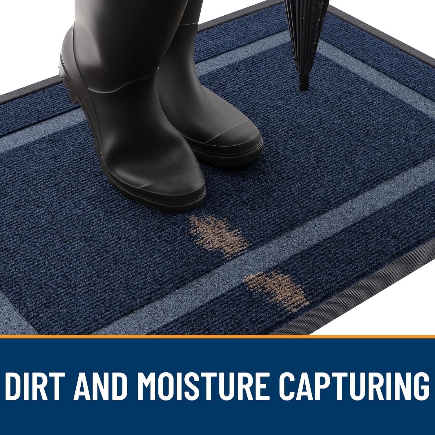 OLANLY Front Door Mat Indoor Outdoor Entrance, Waterproof All-Season, All-Weather Doormat, Sturdy Natural Rubber, Fade Resistant, Low Profile, Easy Clean Patio Porch Entryway Mat, 59x35, Blue
