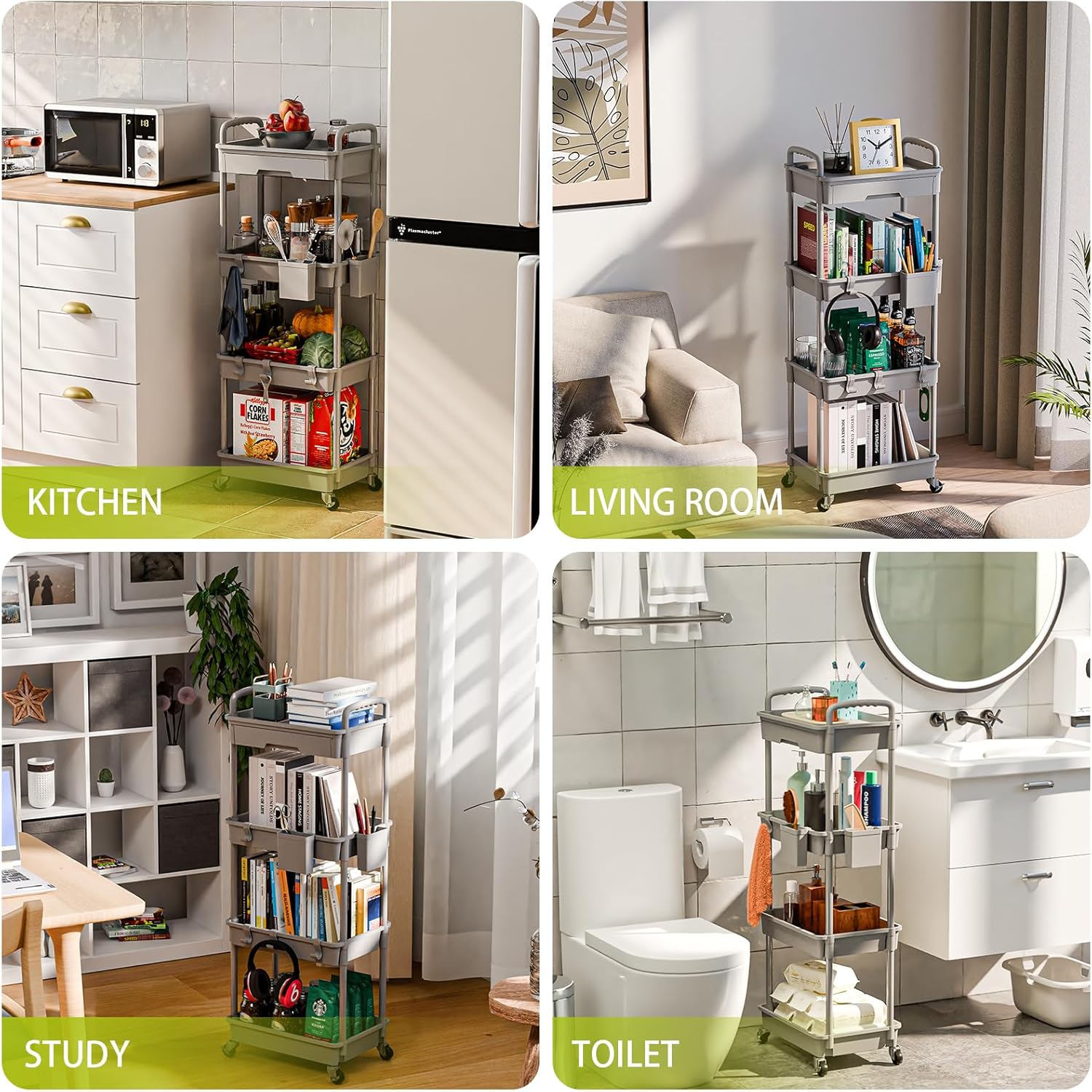 - 【Adjustable & Breathable】 - This 4-tier rolling cart offers adjustable storage, ideal for use on kitchen or bathroom countertops. Its ventilated shelves promote air circulation, efficiently draining away dust and water to keep vegetables, fruits, and other items fresh.