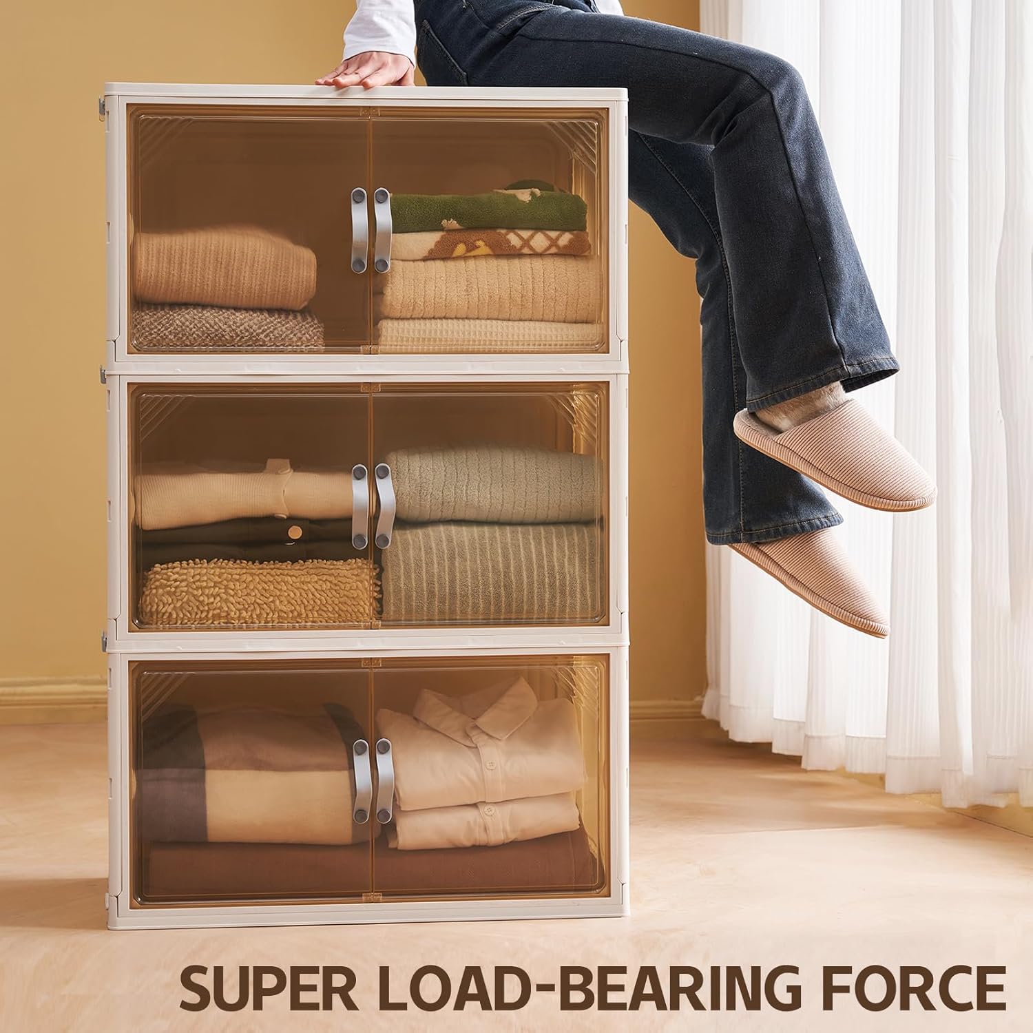 - 【Removable and Stackable】Large stackable storage bins can be easily removed and stacked. Matching grooves and clasps on both sides of the top of each tier lock the storage drawers securely in place without the risk of it falling off.