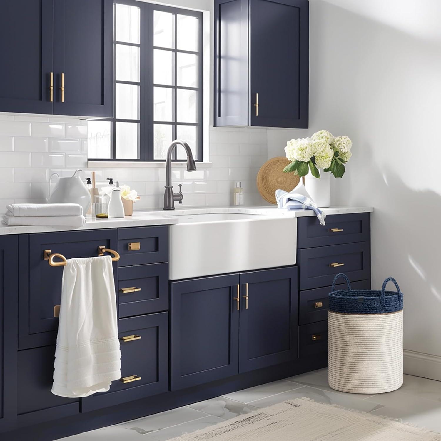 LA JOLIE MUSE Woven Basket Rope Storage Baskets - Large Cotton Organizer, Basket for Baby Blanket, Kids Toy Nursery Laundry Basket Navy Blue M