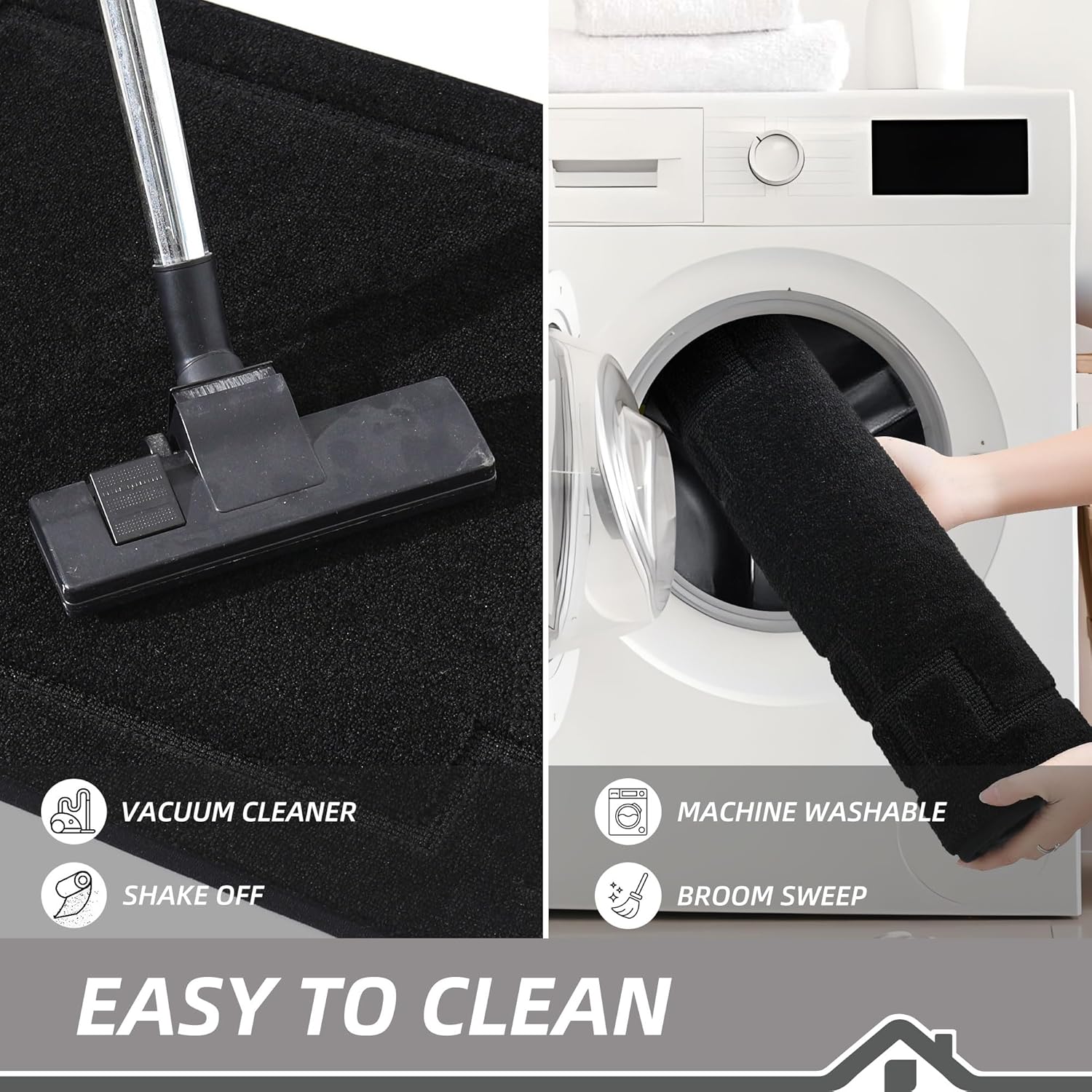 - EASY TO CLEAN: The stain and fade resistant Polyester carpet surface can be easily cleaned by the vacuum cleaner. For a deeper clean, machine wash separately in cold water, using mild detergent. Tumble dry, low heat. Do not use bleach or fabric softener. Our doormat will not fade or wear out and will remain like new even after repeated washing