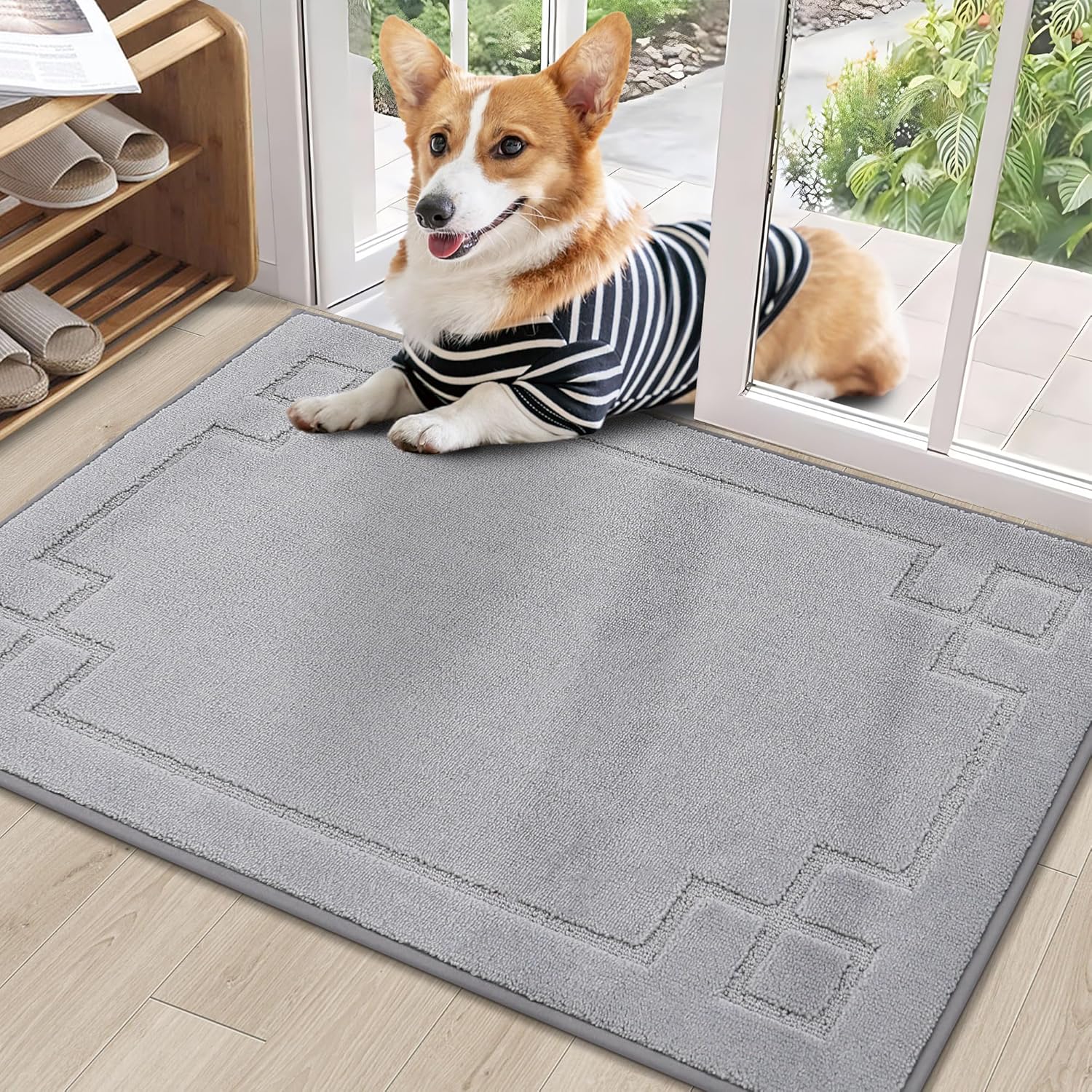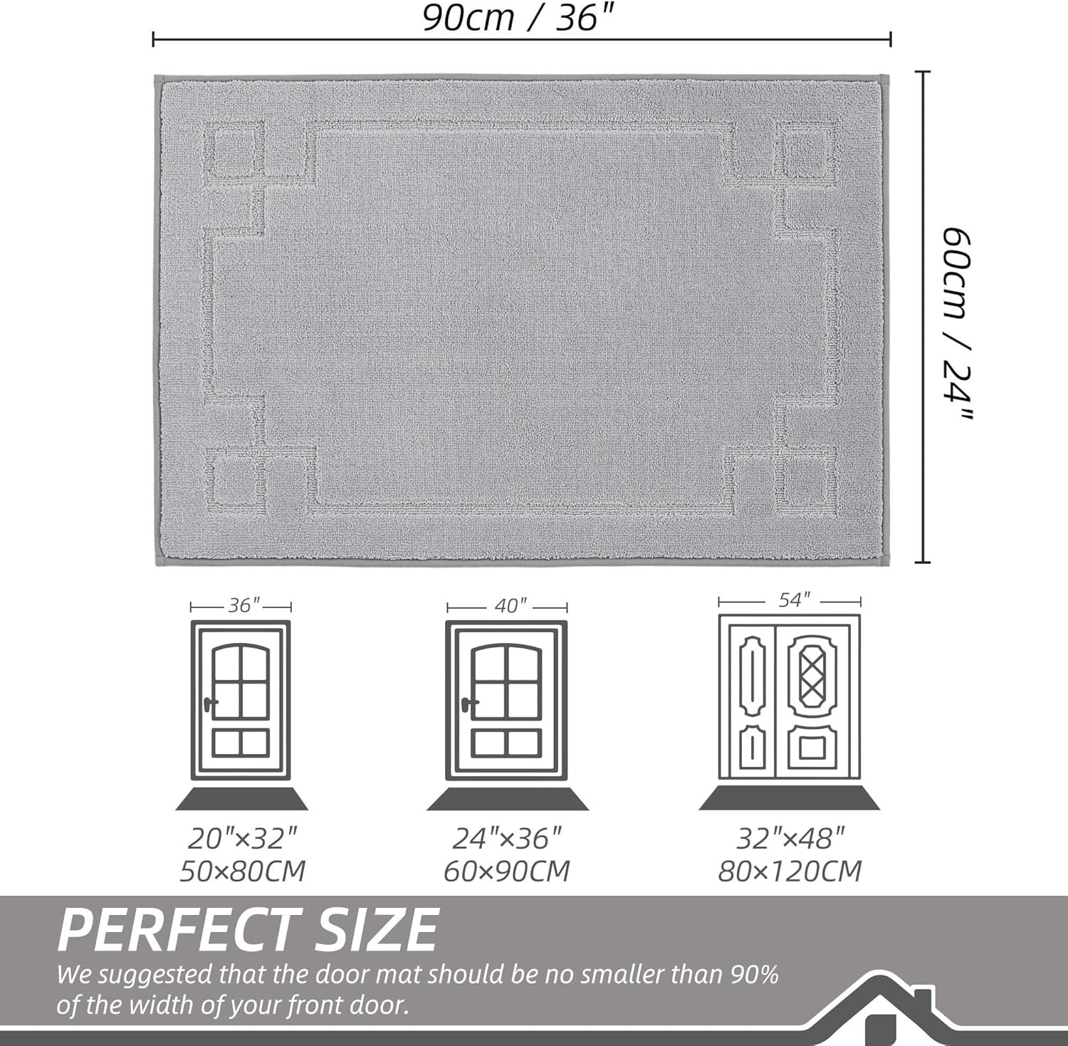 BEQHAUSE Door Mat 24" x 36", Non-Slip Door Mats Indoor Entryway Rugs Washable Low-Profile Absorbent and Stain Resist Floor Mats, Dog Door Mat for Front Back Door, Muddy Wet Shoes & Paws, Light Grey