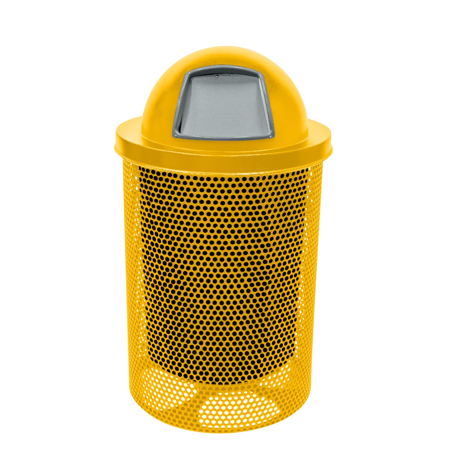 COATEDOUTDOORFURNITURE RDT-P-YEL Heavy Duty Round Trash Receptacle with Dome Top, Liner Included, 32 Gallon, Yellow, Made in America