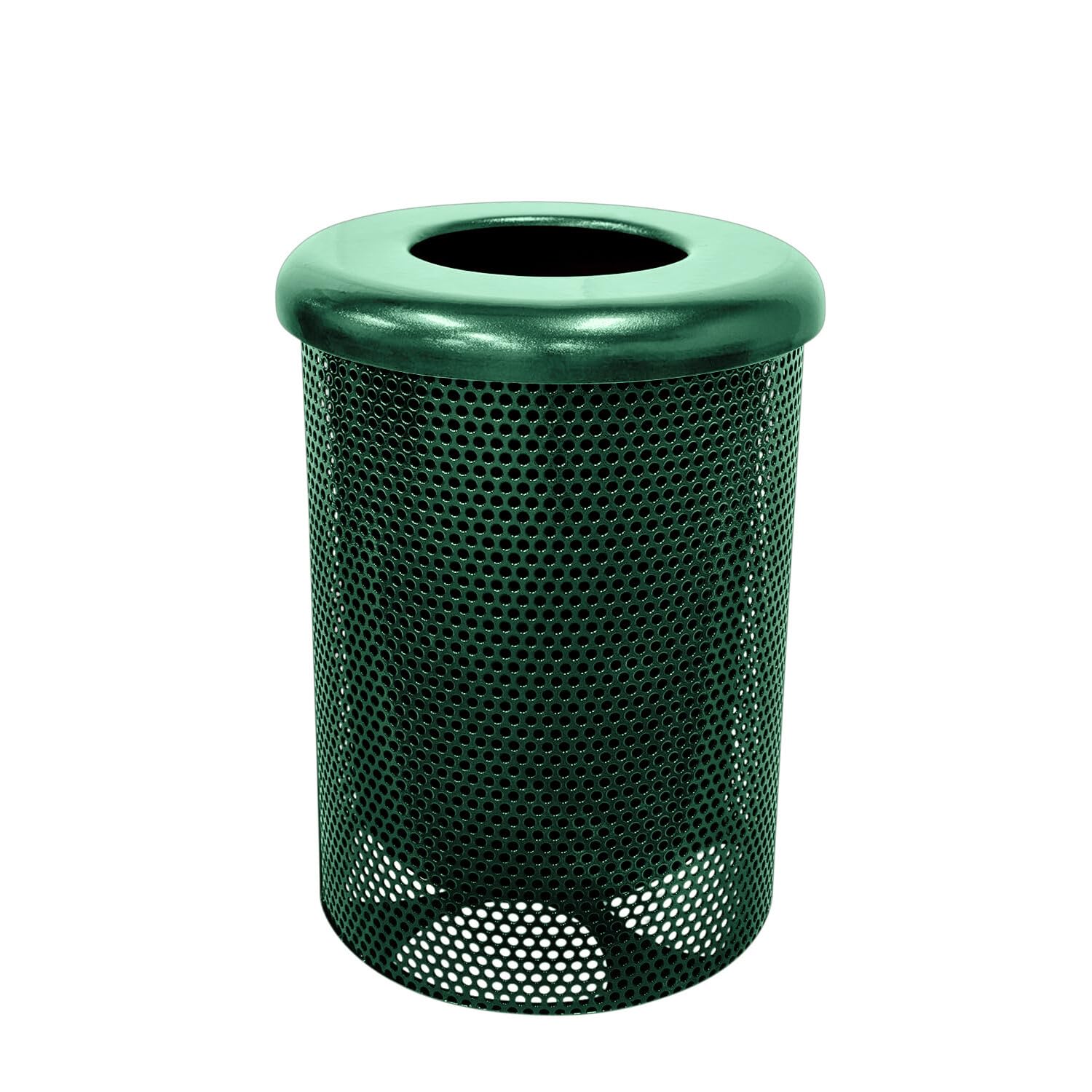 COATEDOUTDOORFURNITURE RFT-P-TXTGRN Heavy Duty Round Trash Receptacle with Flat Top, Liner Included, 32 Gallon, Textured Green, Made in America