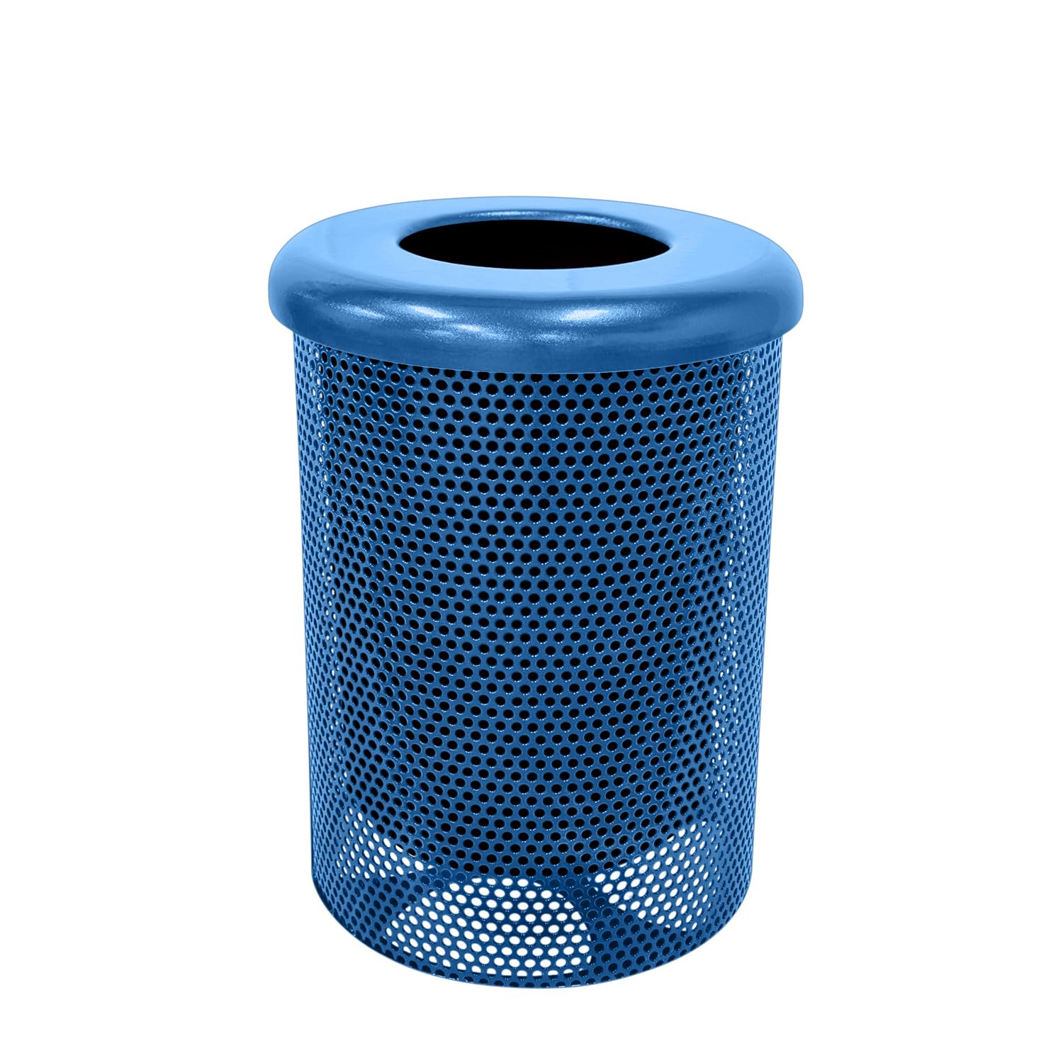 COATEDOUTDOORFURNITURE RFT-P-TXTLBL Heavy Duty Round Trash Receptacle with Flat Top, Liner Included, 32 Gallon, Textured Light Blue, Made in America
